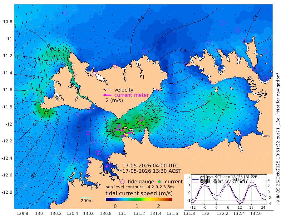 145cm/s -101T +4cm/s rms + 6cm/s 51T. Darwin_C1 52m 126cm/s -91T +4cm/s rms + 7cm/s -161T. Darwin_CW1 22m 70cm/s -107T +4cm/s rms + 8cm/s 61T. Darwin_CW2 34m 78cm/s -135T +3cm/s rms + 9cm/s 98T. Darwin_CW3 22m 121cm/s -91T +5cm/s rms + 7cm/s 88T. Darwin_C3 56m 73cm/s -115T +2cm/s rms + 9cm/s -126T. Darwin_CTbW 22m 8cm/s 145T +1cm/s rms + 1cm/s -47T. DARBGF 30m 14cm/s 167T +4cm/s rms + 3cm/s 80T. NRSDAR 19m 92cm Goodrich Bank -82cm Point Jenny -79cm Native Point -89cm Fish Reef -108cm Tapa Bay 21cm Point Fawcett (Offshore) -125cm Burge Point -110cm Munkunuwa -44cm Beagle A -134cm Parsons Bank -113cm Fenton Patches -138cm Hancox Shoal Area -142cm Nightcliff -147cm Darwin -109cm Charles Point Patches -113cm Glyde Point -113cm Chambers Bay -114cm Point Stuart -101cm Cape Hotham -103cm Christine Reef -131cm West Alligator Head -127cm East Field Island -82cm Two Hills Bay -79cm Camp Point -103cm Medina Inlet South 30cm South Barlow Point 57cm St. Asaph Bay 90cm Cape Van Dieman 87cm Snake Bay 88cm Cache Point 59cm Point Jahleel (Off) 1cm Cape Don 51cm Port Essington 50cm Smith Point - West 53cm NW Peacock Island 71cm North Of Jones Shoal 23cm Peacock Island 21cm Point David 46cm D'urville Point 14cm Copeland Island 27cm One Tree Point