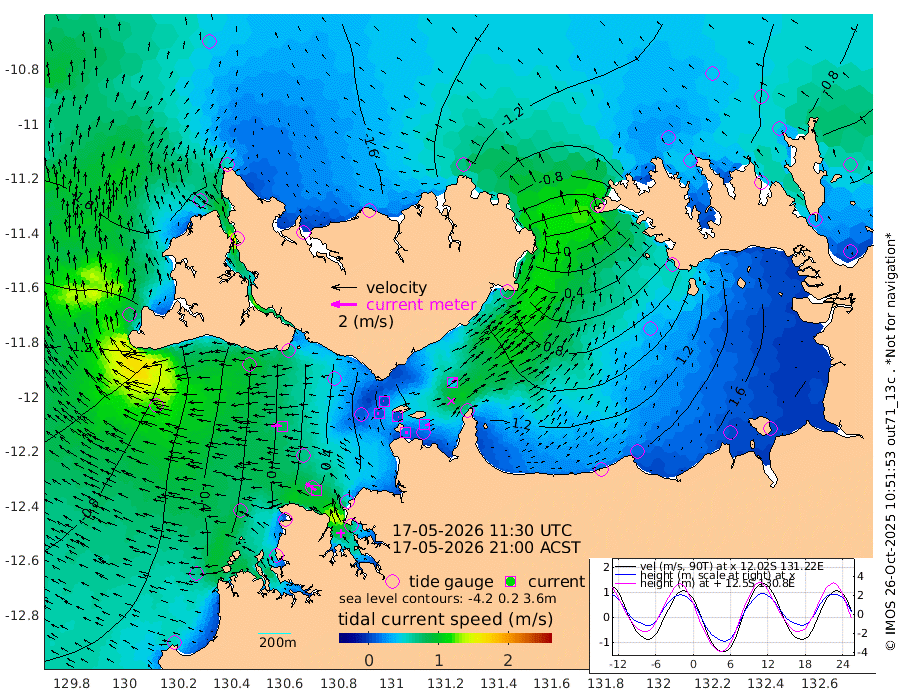 19cm/s 85T +4cm/s rms + 6cm/s 51T. Darwin_C1 52m 28cm/s 90T +4cm/s rms + 7cm/s -161T. Darwin_CW1 22m 11cm/s -83T +4cm/s rms + 8cm/s 61T. Darwin_CW2 34m 45cm/s 41T +3cm/s rms + 9cm/s 98T. Darwin_CW3 22m 8cm/s 108T +5cm/s rms + 7cm/s 88T. Darwin_C3 56m 3cm/s -116T +2cm/s rms + 9cm/s -126T. Darwin_CTbW 22m 82cm/s -86T +1cm/s rms + 1cm/s -47T. DARBGF 30m 95cm/s -55T +4cm/s rms + 3cm/s 80T. NRSDAR 19m -148cm Goodrich Bank -101cm Point Jenny -103cm Native Point -92cm Fish Reef -79cm Tapa Bay -162cm Point Fawcett (Offshore) -61cm Burge Point -87cm Munkunuwa -124cm Beagle A -40cm Parsons Bank -66cm Fenton Patches -21cm Hancox Shoal Area -39cm Nightcliff -25cm Darwin -67cm Charles Point Patches 34cm Glyde Point 116cm Chambers Bay 146cm Point Stuart 59cm Cape Hotham 98cm Christine Reef 172cm West Alligator Head 211cm East Field Island 75cm Two Hills Bay 73cm Camp Point -81cm Medina Inlet South -155cm South Barlow Point -166cm St. Asaph Bay -153cm Cape Van Dieman -146cm Snake Bay -147cm Cache Point -113cm Point Jahleel (Off) -54cm Cape Don -100cm Port Essington -106cm Smith Point - West -95cm NW Peacock Island -117cm North Of Jones Shoal -38cm Peacock Island -40cm Point David -94cm D'urville Point -31cm Copeland Island -52cm One Tree Point