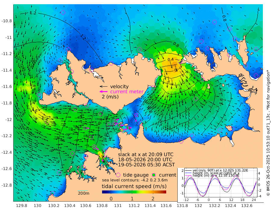 132cm/s 78T +4cm/s rms + 6cm/s 51T. Darwin_C1 52m 91cm/s 88T +4cm/s rms + 7cm/s -161T. Darwin_CW1 22m 91cm/s 74T +4cm/s rms + 8cm/s 61T. Darwin_CW2 34m 19cm/s 105T +3cm/s rms + 9cm/s 98T. Darwin_CW3 22m 97cm/s 87T +5cm/s rms + 7cm/s 88T. Darwin_C3 56m 92cm/s 63T +2cm/s rms + 9cm/s -126T. Darwin_CTbW 22m 104cm/s 91T +1cm/s rms + 1cm/s -47T. DARBGF 30m 105cm/s 121T +4cm/s rms + 3cm/s 80T. NRSDAR 19m 84cm Goodrich Bank 179cm Point Jenny 180cm Native Point 182cm Fish Reef 179cm Tapa Bay 166cm Point Fawcett (Offshore) 173cm Burge Point 208cm Munkunuwa 175cm Beagle A 164cm Parsons Bank 166cm Fenton Patches 133cm Hancox Shoal Area 159cm Nightcliff 150cm Darwin 162cm Charles Point Patches 33cm Glyde Point -91cm Chambers Bay -122cm Point Stuart -11cm Cape Hotham -78cm Christine Reef -143cm West Alligator Head -205cm East Field Island -54cm Two Hills Bay -57cm Camp Point 183cm Medina Inlet South 157cm South Barlow Point 141cm St. Asaph Bay 95cm Cape Van Dieman 94cm Snake Bay 84cm Cache Point 70cm Point Jahleel (Off) 44cm Cape Don 62cm Port Essington 70cm Smith Point - West 54cm NW Peacock Island 62cm North Of Jones Shoal 21cm Peacock Island 20cm Point David 60cm D'urville Point 14cm Copeland Island 25cm One Tree Point