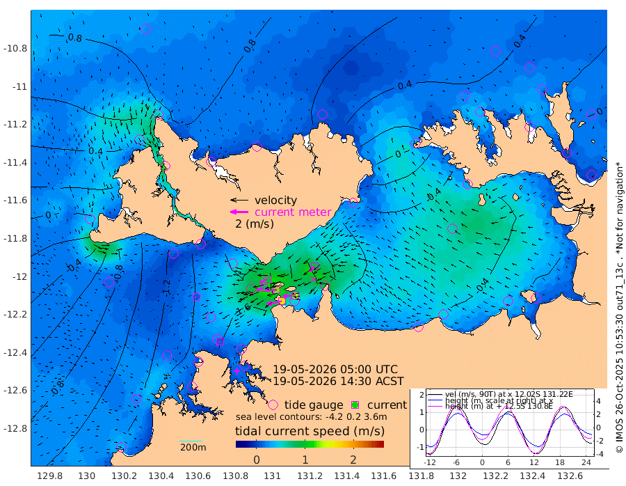 170cm/s -101T +4cm/s rms + 6cm/s 51T. Darwin_C1 52m 136cm/s -90T +4cm/s rms + 7cm/s -161T. Darwin_CW1 22m 79cm/s -107T +4cm/s rms + 8cm/s 61T. Darwin_CW2 34m 82cm/s -134T +3cm/s rms + 9cm/s 98T. Darwin_CW3 22m 125cm/s -91T +5cm/s rms + 7cm/s 88T. Darwin_C3 56m 91cm/s -115T +2cm/s rms + 9cm/s -126T. Darwin_CTbW 22m 10cm/s -120T +1cm/s rms + 1cm/s -47T. DARBGF 30m 11cm/s -124T +4cm/s rms + 3cm/s 80T. NRSDAR 19m 86cm Goodrich Bank -87cm Point Jenny -85cm Native Point -99cm Fish Reef -114cm Tapa Bay 11cm Point Fawcett (Offshore) -129cm Burge Point -122cm Munkunuwa -54cm Beagle A -144cm Parsons Bank -119cm Fenton Patches -140cm Hancox Shoal Area -143cm Nightcliff -149cm Darwin -110cm Charles Point Patches -108cm Glyde Point -94cm Chambers Bay -99cm Point Stuart -96cm Cape Hotham -85cm Christine Reef -113cm West Alligator Head -101cm East Field Island -75cm Two Hills Bay -63cm Camp Point -110cm Medina Inlet South 18cm South Barlow Point 48cm St. Asaph Bay 82cm Cape Van Dieman 77cm Snake Bay 80cm Cache Point 51cm Point Jahleel (Off) -1cm Cape Don 43cm Port Essington 39cm Smith Point - West 43cm NW Peacock Island 66cm North Of Jones Shoal 20cm Peacock Island 12cm Point David 35cm D'urville Point 5cm Copeland Island 20cm One Tree Point