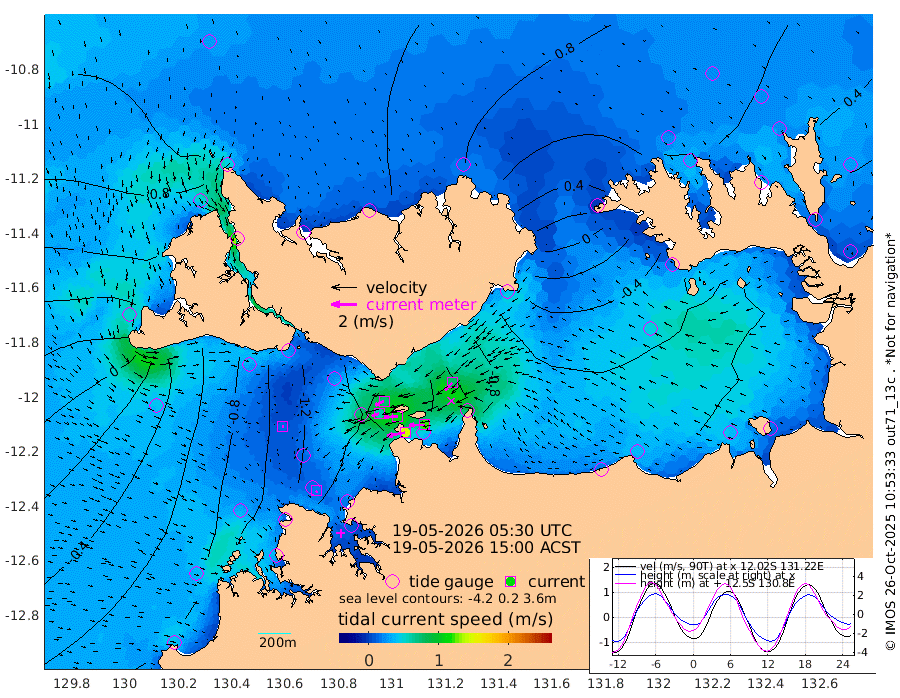 145cm/s -101T +4cm/s rms + 6cm/s 51T. Darwin_C1 52m 120cm/s -91T +4cm/s rms + 7cm/s -161T. Darwin_CW1 22m 60cm/s -107T +4cm/s rms + 8cm/s 61T. Darwin_CW2 34m 81cm/s -135T +3cm/s rms + 9cm/s 98T. Darwin_CW3 22m 106cm/s -91T +5cm/s rms + 7cm/s 88T. Darwin_C3 56m 74cm/s -116T +2cm/s rms + 9cm/s -126T. Darwin_CTbW 22m 13cm/s 117T +1cm/s rms + 1cm/s -47T. DARBGF 30m 19cm/s 154T +4cm/s rms + 3cm/s 80T. NRSDAR 19m 101cm Goodrich Bank -55cm Point Jenny -52cm Native Point -65cm Fish Reef -79cm Tapa Bay 40cm Point Fawcett (Offshore) -96cm Burge Point -84cm Munkunuwa -22cm Beagle A -109cm Parsons Bank -87cm Fenton Patches -112cm Hancox Shoal Area -113cm Nightcliff -117cm Darwin -76cm Charles Point Patches -98cm Glyde Point -110cm Chambers Bay -119cm Point Stuart -94cm Cape Hotham -100cm Christine Reef -138cm West Alligator Head -138cm East Field Island -82cm Two Hills Bay -70cm Camp Point -74cm Medina Inlet South 48cm South Barlow Point 72cm St. Asaph Bay 100cm Cape Van Dieman 96cm Snake Bay 96cm Cache Point 66cm Point Jahleel (Off) 11cm Cape Don 60cm Port Essington 57cm Smith Point - West 59cm NW Peacock Island 80cm North Of Jones Shoal 26cm Peacock Island 28cm Point David 53cm D'urville Point 20cm Copeland Island 35cm One Tree Point