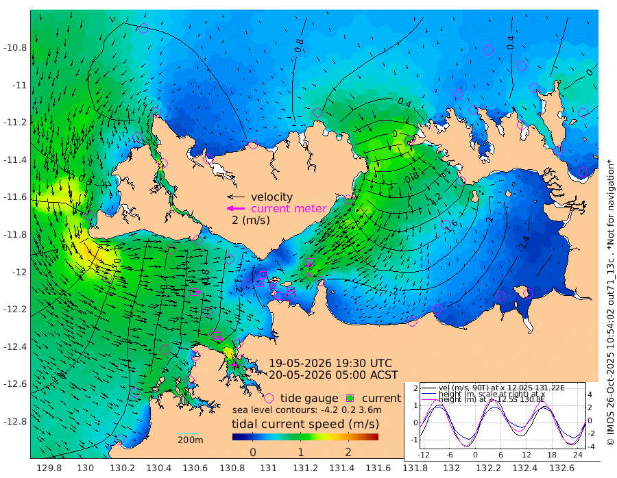 21cm/s -102T +4cm/s rms + 6cm/s 51T. Darwin_C1 52m 33cm/s -94T +4cm/s rms + 7cm/s -161T. Darwin_CW1 22m 18cm/s 71T +4cm/s rms + 8cm/s 61T. Darwin_CW2 34m 71cm/s -144T +3cm/s rms + 9cm/s 98T. Darwin_CW3 22m 20cm/s -81T +5cm/s rms + 7cm/s 88T. Darwin_C3 56m 7cm/s 59T +2cm/s rms + 9cm/s -126T. Darwin_CTbW 22m 85cm/s 95T +1cm/s rms + 1cm/s -47T. DARBGF 30m 93cm/s 126T +4cm/s rms + 3cm/s 80T. NRSDAR 19m 73cm Goodrich Bank 22cm Point Jenny 25cm Native Point 18cm Fish Reef 5cm Tapa Bay 80cm Point Fawcett (Offshore) -15cm Burge Point 45cm Munkunuwa 41cm Beagle A -20cm Parsons Bank -11cm Fenton Patches -47cm Hancox Shoal Area -28cm Nightcliff -48cm Darwin -19cm Charles Point Patches -112cm Glyde Point -204cm Chambers Bay -230cm Point Stuart -135cm Cape Hotham -187cm Christine Reef -258cm West Alligator Head -305cm East Field Island -156cm Two Hills Bay -157cm Camp Point 13cm Medina Inlet South 87cm South Barlow Point 93cm St. Asaph Bay 80cm Cape Van Dieman 75cm Snake Bay 64cm Cache Point 39cm Point Jahleel (Off) -26cm Cape Don 23cm Port Essington 30cm Smith Point - West 18cm NW Peacock Island 40cm North Of Jones Shoal 11cm Peacock Island -29cm Point David 19cm D'urville Point -36cm Copeland Island -23cm One Tree Point