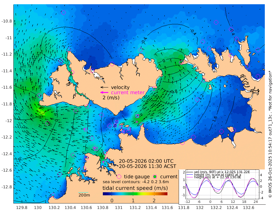 29cm/s 81T +4cm/s rms + 6cm/s 51T. Darwin_C1 52m 48cm/s 88T +4cm/s rms + 7cm/s -161T. Darwin_CW1 22m 6cm/s 77T +4cm/s rms + 8cm/s 61T. Darwin_CW2 34m 44cm/s 39T +3cm/s rms + 9cm/s 98T. Darwin_CW3 22m 42cm/s 94T +5cm/s rms + 7cm/s 88T. Darwin_C3 56m 12cm/s 75T +2cm/s rms + 9cm/s -126T. Darwin_CTbW 22m 52cm/s -82T +1cm/s rms + 1cm/s -47T. DARBGF 30m 64cm/s -53T +4cm/s rms + 3cm/s 80T. NRSDAR 19m -33cm Goodrich Bank 26cm Point Jenny 23cm Native Point 23cm Fish Reef 34cm Tapa Bay -20cm Point Fawcett (Offshore) 51cm Burge Point 4cm Munkunuwa 13cm Beagle A 36cm Parsons Bank 47cm Fenton Patches 60cm Hancox Shoal Area 61cm Nightcliff 62cm Darwin 43cm Charles Point Patches 104cm Glyde Point 180cm Chambers Bay 190cm Point Stuart 117cm Cape Hotham 171cm Christine Reef 216cm West Alligator Head 252cm East Field Island 133cm Two Hills Bay 134cm Camp Point 26cm Medina Inlet South -38cm South Barlow Point -35cm St. Asaph Bay -40cm Cape Van Dieman -41cm Snake Bay -26cm Cache Point -11cm Point Jahleel (Off) 30cm Cape Don -19cm Port Essington -21cm Smith Point - West -19cm NW Peacock Island -21cm North Of Jones Shoal -8cm Peacock Island -11cm Point David -24cm D'urville Point -8cm Copeland Island -6cm One Tree Point