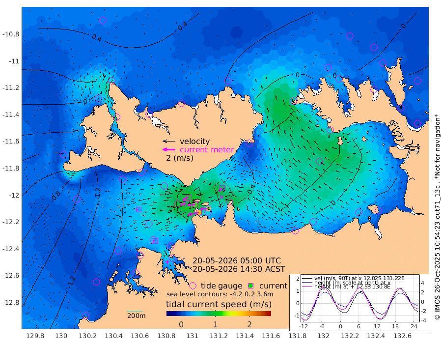 181cm/s -102T +4cm/s rms + 6cm/s 51T. Darwin_C1 52m 130cm/s -90T +4cm/s rms + 7cm/s -161T. Darwin_CW1 22m 89cm/s -107T +4cm/s rms + 8cm/s 61T. Darwin_CW2 34m 76cm/s -132T +3cm/s rms + 9cm/s 98T. Darwin_CW3 22m 121cm/s -91T +5cm/s rms + 7cm/s 88T. Darwin_C3 56m 101cm/s -115T +2cm/s rms + 9cm/s -126T. Darwin_CTbW 22m 33cm/s -95T +1cm/s rms + 1cm/s -47T. DARBGF 30m 29cm/s -76T +4cm/s rms + 3cm/s 80T. NRSDAR 19m 55cm Goodrich Bank -102cm Point Jenny -101cm Native Point -117cm Fish Reef -126cm Tapa Bay -21cm Point Fawcett (Offshore) -136cm Burge Point -140cm Munkunuwa -76cm Beagle A -153cm Parsons Bank -128cm Fenton Patches -141cm Hancox Shoal Area -144cm Nightcliff -153cm Darwin -122cm Charles Point Patches -94cm Glyde Point -50cm Chambers Bay -52cm Point Stuart -76cm Cape Hotham -44cm Christine Reef -58cm West Alligator Head -32cm East Field Island -50cm Two Hills Bay -34cm Camp Point -124cm Medina Inlet South -17cm South Barlow Point 15cm St. Asaph Bay 48cm Cape Van Dieman 42cm Snake Bay 49cm Cache Point 27cm Point Jahleel (Off) -12cm Cape Don 16cm Port Essington 11cm Smith Point - West 16cm NW Peacock Island 38cm North Of Jones Shoal 11cm Peacock Island -9cm Point David 6cm D'urville Point -15cm Copeland Island -1cm One Tree Point