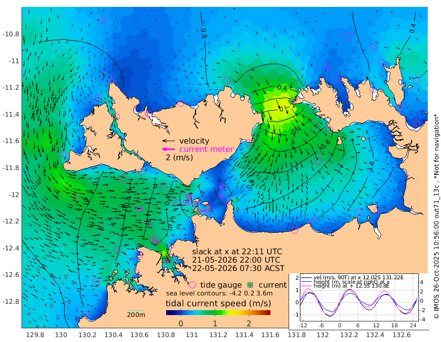 113cm/s 78T +4cm/s rms + 6cm/s 51T. Darwin_C1 52m 71cm/s 88T +4cm/s rms + 7cm/s -161T. Darwin_CW1 22m 61cm/s 74T +4cm/s rms + 8cm/s 61T. Darwin_CW2 34m 18cm/s 96T +3cm/s rms + 9cm/s 98T. Darwin_CW3 22m 62cm/s 87T +5cm/s rms + 7cm/s 88T. Darwin_C3 56m 74cm/s 63T +2cm/s rms + 9cm/s -126T. Darwin_CTbW 22m 76cm/s 91T +1cm/s rms + 1cm/s -47T. DARBGF 30m 77cm/s 120T +4cm/s rms + 3cm/s 80T. NRSDAR 19m 70cm Goodrich Bank 107cm Point Jenny 110cm Native Point 113cm Fish Reef 108cm Tapa Bay 114cm Point Fawcett (Offshore) 99cm Burge Point 136cm Munkunuwa 113cm Beagle A 97cm Parsons Bank 100cm Fenton Patches 72cm Hancox Shoal Area 92cm Nightcliff 87cm Darwin 98cm Charles Point Patches 0cm Glyde Point -100cm Chambers Bay -119cm Point Stuart -32cm Cape Hotham -86cm Christine Reef -136cm West Alligator Head -183cm East Field Island -61cm Two Hills Bay -66cm Camp Point 116cm Medina Inlet South 117cm South Barlow Point 105cm St. Asaph Bay 76cm Cape Van Dieman 79cm Snake Bay 65cm Cache Point 53cm Point Jahleel (Off) 21cm Cape Don 43cm Port Essington 50cm Smith Point - West 38cm NW Peacock Island 47cm North Of Jones Shoal 15cm Peacock Island 4cm Point David 42cm D'urville Point -1cm Copeland Island 10cm One Tree Point