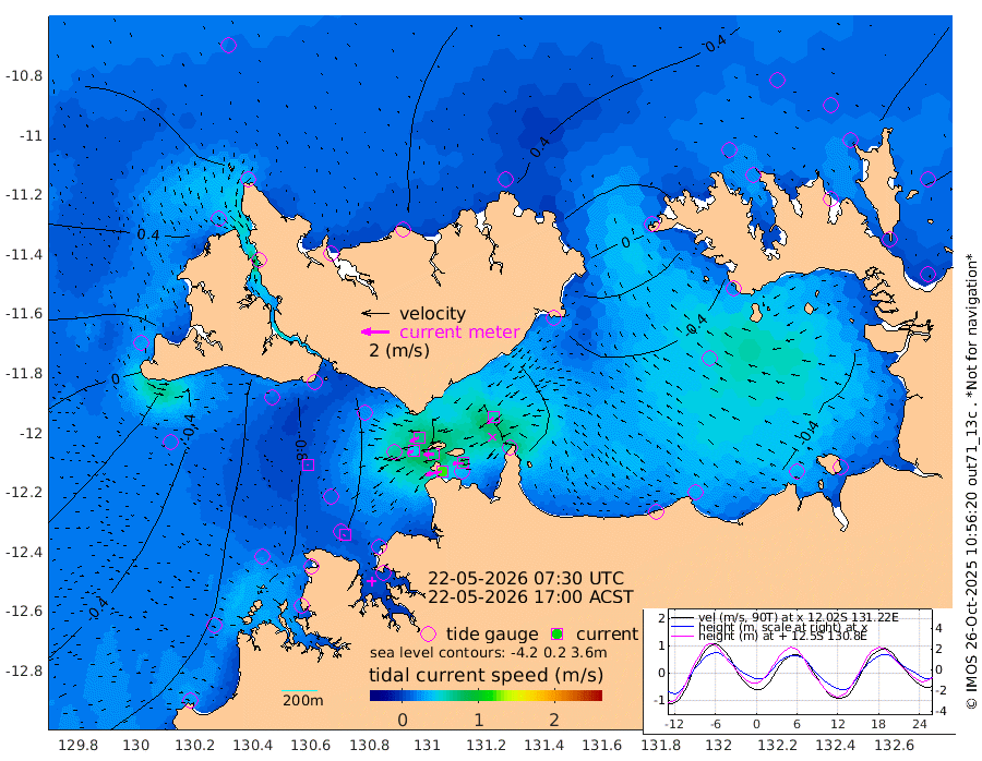 121cm/s -101T +4cm/s rms + 6cm/s 51T. Darwin_C1 52m 76cm/s -91T +4cm/s rms + 7cm/s -161T. Darwin_CW1 22m 47cm/s -107T +4cm/s rms + 8cm/s 61T. Darwin_CW2 34m 63cm/s -136T +3cm/s rms + 9cm/s 98T. Darwin_CW3 22m 70cm/s -91T +5cm/s rms + 7cm/s 88T. Darwin_C3 56m 69cm/s -116T +2cm/s rms + 9cm/s -126T. Darwin_CTbW 22m 4cm/s -142T +1cm/s rms + 1cm/s -47T. DARBGF 30m 7cm/s -139T +4cm/s rms + 3cm/s 80T. NRSDAR 19m 61cm Goodrich Bank -57cm Point Jenny -53cm Native Point -70cm Fish Reef -71cm Tapa Bay 9cm Point Fawcett (Offshore) -82cm Burge Point -72cm Munkunuwa -40cm Beagle A -93cm Parsons Bank -83cm Fenton Patches -92cm Hancox Shoal Area -93cm Nightcliff -95cm Darwin -66cm Charles Point Patches -82cm Glyde Point -89cm Chambers Bay -96cm Point Stuart -81cm Cape Hotham -79cm Christine Reef -109cm West Alligator Head -106cm East Field Island -73cm Two Hills Bay -53cm Camp Point -67cm Medina Inlet South 19cm South Barlow Point 37cm St. Asaph Bay 59cm Cape Van Dieman 57cm Snake Bay 52cm Cache Point 31cm Point Jahleel (Off) -8cm Cape Don 26cm Port Essington 20cm Smith Point - West 23cm NW Peacock Island 43cm North Of Jones Shoal 13cm Peacock Island 4cm Point David 17cm D'urville Point -2cm Copeland Island 9cm One Tree Point
