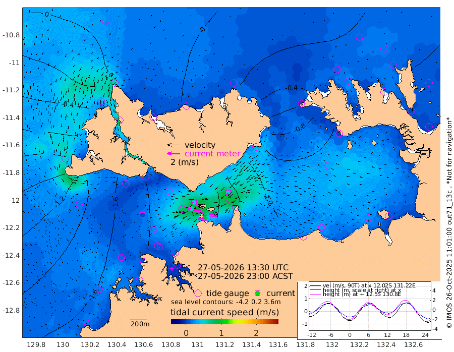 94cm/s -101T +4cm/s rms + 6cm/s 51T. Darwin_C1 52m 83cm/s -91T +4cm/s rms + 7cm/s -161T. Darwin_CW1 22m 54cm/s -106T +4cm/s rms + 8cm/s 61T. Darwin_CW2 34m 57cm/s -139T +3cm/s rms + 9cm/s 98T. Darwin_CW3 22m 94cm/s -90T +5cm/s rms + 7cm/s 88T. Darwin_C3 56m 48cm/s -115T +2cm/s rms + 9cm/s -126T. Darwin_CTbW 22m 7cm/s -164T +1cm/s rms + 1cm/s -47T. DARBGF 30m 8cm/s 161T +4cm/s rms + 3cm/s 80T. NRSDAR 19m 4cm Goodrich Bank -142cm Point Jenny -139cm Native Point -162cm Fish Reef -157cm Tapa Bay -67cm Point Fawcett (Offshore) -188cm Burge Point -139cm Munkunuwa -134cm Beagle A -170cm Parsons Bank -183cm Fenton Patches -170cm Hancox Shoal Area -180cm Nightcliff -198cm Darwin -175cm Charles Point Patches -168cm Glyde Point -158cm Chambers Bay -167cm Point Stuart -156cm Cape Hotham -148cm Christine Reef -180cm West Alligator Head -187cm East Field Island -139cm Two Hills Bay -137cm Camp Point -158cm Medina Inlet South -49cm South Barlow Point -27cm St. Asaph Bay 3cm Cape Van Dieman -1cm Snake Bay -8cm Cache Point -23cm Point Jahleel (Off) -70cm Cape Don -28cm Port Essington -26cm Smith Point - West -24cm NW Peacock Island -11cm North Of Jones Shoal -5cm Peacock Island -36cm Point David -27cm D'urville Point -39cm Copeland Island -39cm One Tree Point