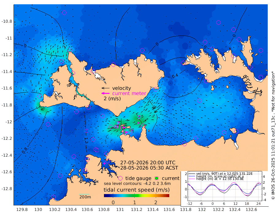 85cm/s 80T +4cm/s rms + 6cm/s 51T. Darwin_C1 52m 77cm/s 92T +4cm/s rms + 7cm/s -161T. Darwin_CW1 22m 54cm/s 72T +4cm/s rms + 8cm/s 61T. Darwin_CW2 34m 50cm/s 43T +3cm/s rms + 9cm/s 98T. Darwin_CW3 22m 91cm/s 90T +5cm/s rms + 7cm/s 88T. Darwin_C3 56m 41cm/s 66T +2cm/s rms + 9cm/s -126T. Darwin_CTbW 22m 8cm/s 40T +1cm/s rms + 1cm/s -47T. DARBGF 30m 5cm/s -22T +4cm/s rms + 3cm/s 80T. NRSDAR 19m -20cm Goodrich Bank 112cm Point Jenny 107cm Native Point 126cm Fish Reef 128cm Tapa Bay 50cm Point Fawcett (Offshore) 145cm Burge Point 116cm Munkunuwa 95cm Beagle A 134cm Parsons Bank 136cm Fenton Patches 139cm Hancox Shoal Area 146cm Nightcliff 153cm Darwin 135cm Charles Point Patches 128cm Glyde Point 129cm Chambers Bay 133cm Point Stuart 124cm Cape Hotham 116cm Christine Reef 146cm West Alligator Head 147cm East Field Island 107cm Two Hills Bay 101cm Camp Point 123cm Medina Inlet South 25cm South Barlow Point 12cm St. Asaph Bay -19cm Cape Van Dieman -19cm Snake Bay -9cm Cache Point 5cm Point Jahleel (Off) 43cm Cape Don 6cm Port Essington 5cm Smith Point - West 2cm NW Peacock Island -4cm North Of Jones Shoal -1cm Peacock Island 15cm Point David 4cm D'urville Point 18cm Copeland Island 16cm One Tree Point