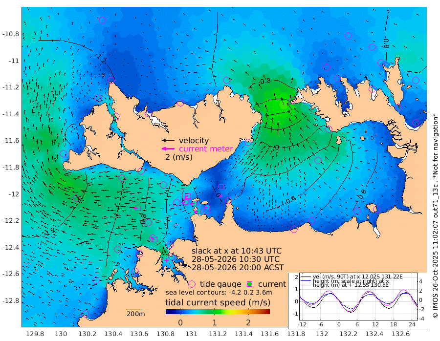 65cm/s -102T +4cm/s rms + 6cm/s 51T. Darwin_C1 52m 33cm/s -88T +4cm/s rms + 7cm/s -161T. Darwin_CW1 22m 55cm/s -107T +4cm/s rms + 8cm/s 61T. Darwin_CW2 34m 10cm/s -96T +3cm/s rms + 9cm/s 98T. Darwin_CW3 22m 65cm/s -93T +5cm/s rms + 7cm/s 88T. Darwin_C3 56m 47cm/s -115T +2cm/s rms + 9cm/s -126T. Darwin_CTbW 22m 66cm/s -89T +1cm/s rms + 1cm/s -47T. DARBGF 30m 63cm/s -57T +4cm/s rms + 3cm/s 80T. NRSDAR 19m -92cm Goodrich Bank -134cm Point Jenny -133cm Native Point -133cm Fish Reef -130cm Tapa Bay -143cm Point Fawcett (Offshore) -119cm Burge Point -126cm Munkunuwa -139cm Beagle A -109cm Parsons Bank -122cm Fenton Patches -100cm Hancox Shoal Area -125cm Nightcliff -108cm Darwin -123cm Charles Point Patches -47cm Glyde Point 11cm Chambers Bay 38cm Point Stuart -26cm Cape Hotham 10cm Christine Reef 51cm West Alligator Head 83cm East Field Island -6cm Two Hills Bay -1cm Camp Point -129cm Medina Inlet South -129cm South Barlow Point -125cm St. Asaph Bay -98cm Cape Van Dieman -101cm Snake Bay -98cm Cache Point -86cm Point Jahleel (Off) -67cm Cape Don -79cm Port Essington -87cm Smith Point - West -78cm NW Peacock Island -90cm North Of Jones Shoal -31cm Peacock Island -55cm Point David -81cm D'urville Point -51cm Copeland Island -63cm One Tree Point