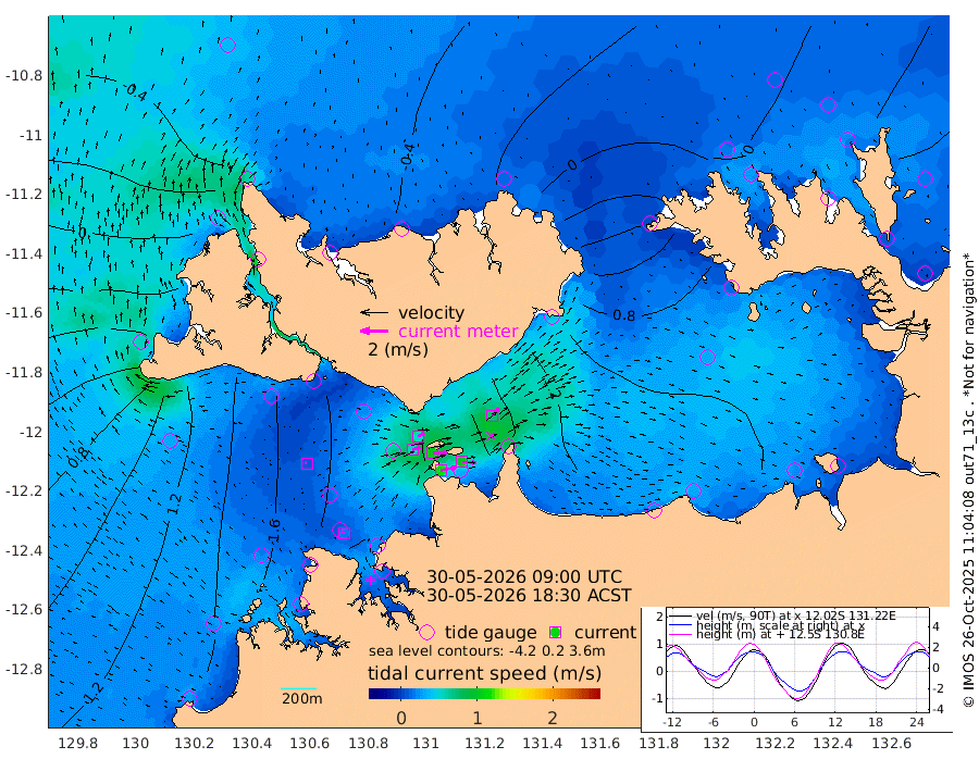 116cm/s 79T +4cm/s rms + 6cm/s 51T. Darwin_C1 52m 101cm/s 93T +4cm/s rms + 7cm/s -161T. Darwin_CW1 22m 58cm/s 71T +4cm/s rms + 8cm/s 61T. Darwin_CW2 34m 75cm/s 43T +3cm/s rms + 9cm/s 98T. Darwin_CW3 22m 104cm/s 90T +5cm/s rms + 7cm/s 88T. Darwin_C3 56m 51cm/s 65T +2cm/s rms + 9cm/s -126T. Darwin_CTbW 22m 11cm/s -60T +1cm/s rms + 1cm/s -47T. DARBGF 30m 19cm/s -42T +4cm/s rms + 3cm/s 80T. NRSDAR 19m -56cm Goodrich Bank 72cm Point Jenny 70cm Native Point 96cm Fish Reef 94cm Tapa Bay -1cm Point Fawcett (Offshore) 118cm Burge Point 89cm Munkunuwa 49cm Beagle A 126cm Parsons Bank 106cm Fenton Patches 121cm Hancox Shoal Area 118cm Nightcliff 148cm Darwin 119cm Charles Point Patches 123cm Glyde Point 113cm Chambers Bay 130cm Point Stuart 113cm Cape Hotham 97cm Christine Reef 140cm West Alligator Head 142cm East Field Island 101cm Two Hills Bay 96cm Camp Point 102cm Medina Inlet South -6cm South Barlow Point -35cm St. Asaph Bay -54cm Cape Van Dieman -44cm Snake Bay -48cm Cache Point -26cm Point Jahleel (Off) 33cm Cape Don -3cm Port Essington -10cm Smith Point - West -7cm NW Peacock Island -27cm North Of Jones Shoal -6cm Peacock Island 31cm Point David -1cm D'urville Point 36cm Copeland Island 28cm One Tree Point
