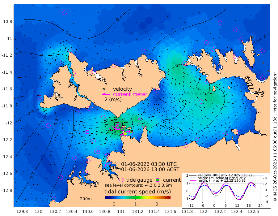 137cm/s -101T +4cm/s rms + 6cm/s 51T. Darwin_C1 52m 120cm/s -90T +4cm/s rms + 7cm/s -161T. Darwin_CW1 22m 71cm/s -107T +4cm/s rms + 8cm/s 61T. Darwin_CW2 34m 57cm/s -133T +3cm/s rms + 9cm/s 98T. Darwin_CW3 22m 105cm/s -91T +5cm/s rms + 7cm/s 88T. Darwin_C3 56m 76cm/s -115T +2cm/s rms + 9cm/s -126T. Darwin_CTbW 22m 26cm/s -95T +1cm/s rms + 1cm/s -47T. DARBGF 30m 24cm/s -76T +4cm/s rms + 3cm/s 80T. NRSDAR 19m 54cm Goodrich Bank -74cm Point Jenny -71cm Native Point -87cm Fish Reef -92cm Tapa Bay -10cm Point Fawcett (Offshore) -96cm Burge Point -100cm Munkunuwa -50cm Beagle A -110cm Parsons Bank -92cm Fenton Patches -105cm Hancox Shoal Area -111cm Nightcliff -117cm Darwin -97cm Charles Point Patches -69cm Glyde Point -40cm Chambers Bay -35cm Point Stuart -52cm Cape Hotham -31cm Christine Reef -39cm West Alligator Head -22cm East Field Island -31cm Two Hills Bay -25cm Camp Point -94cm Medina Inlet South -4cm South Barlow Point 19cm St. Asaph Bay 50cm Cape Van Dieman 46cm Snake Bay 50cm Cache Point 33cm Point Jahleel (Off) -2cm Cape Don 21cm Port Essington 19cm Smith Point - West 24cm NW Peacock Island 35cm North Of Jones Shoal 10cm Peacock Island 7cm Point David 16cm D'urville Point 1cm Copeland Island 9cm One Tree Point