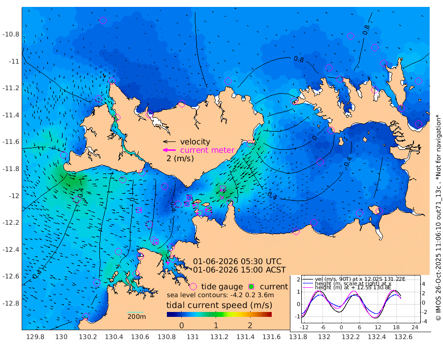 58cm/s -100T +4cm/s rms + 6cm/s 51T. Darwin_C1 52m 67cm/s -91T +4cm/s rms + 7cm/s -161T. Darwin_CW1 22m 17cm/s -106T +4cm/s rms + 8cm/s 61T. Darwin_CW2 34m 56cm/s -136T +3cm/s rms + 9cm/s 98T. Darwin_CW3 22m 52cm/s -90T +5cm/s rms + 7cm/s 88T. Darwin_C3 56m 12cm/s -113T +2cm/s rms + 9cm/s -126T. Darwin_CTbW 22m 32cm/s 99T +1cm/s rms + 1cm/s -47T. DARBGF 30m 35cm/s 133T +4cm/s rms + 3cm/s 80T. NRSDAR 19m 88cm Goodrich Bank 21cm Point Jenny 25cm Native Point 7cm Fish Reef 8cm Tapa Bay 64cm Point Fawcett (Offshore) 0cm Burge Point 6cm Munkunuwa 38cm Beagle A -11cm Parsons Bank 2cm Fenton Patches -19cm Hancox Shoal Area -10cm Nightcliff -21cm Darwin 2cm Charles Point Patches -38cm Glyde Point -79cm Chambers Bay -91cm Point Stuart -46cm Cape Hotham -64cm Christine Reef -110cm West Alligator Head -124cm East Field Island -52cm Two Hills Bay -39cm Camp Point 6cm Medina Inlet South 74cm South Barlow Point 80cm St. Asaph Bay 91cm Cape Van Dieman 93cm Snake Bay 84cm Cache Point 65cm Point Jahleel (Off) 28cm Cape Don 60cm Port Essington 60cm Smith Point - West 62cm NW Peacock Island 71cm North Of Jones Shoal 24cm Peacock Island 49cm Point David 61cm D'urville Point 42cm Copeland Island 48cm One Tree Point