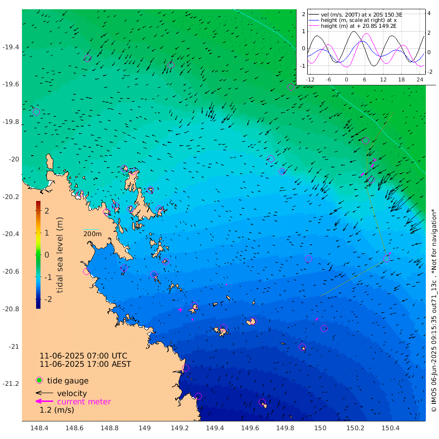 12cm/s -178T +10cm/s rms + 2cm/s 5T. Brampton I 18m 10cm/s -159T +9cm/s rms + 6cm/s 66T. Wigton I 38m 18cm/s -145T +7cm/s rms + 8cm/s 141T. Tern I 47m 28cm/s -144T +7cm/s rms + 12cm/s 54T. N Bugatti Rf 64m 24cm/s -135T +3cm/s rms + 13cm/s 178T. W Bugatti Rf 70m 13cm/s -131T +3cm/s rms + 3cm/s -130T. Creal Rf 69m -81cm Holbourne I -162cm Tern I -81cm Bugatti Rf -115cm Creal Rf -57cm White Tip I -67cm Wallaby Reef -64cm Kennedy Reef -41cm Unnamed Reef No. 2 -100cm Tideway Reef -89cm Hayman Island -135cm Square Reef -95cm Double Bay -119cm Molle Island -114cm Cid Harbour -100cm Hook Island -109cm Border Island -114cm Haslewood Island -115cm Shute Harbour -140cm Thomas Island -140cm Credlin Reef -147cm East Repulse Island -153cm Blacksmith Island -167cm Laguna Quays -153cm Carlisle Island (Off) -172cm St. Bees Island -159cm Scawfell Island -168cm Penrith Island -186cm Mackay Outer Harbour -196cm Hay Point -197cm Prudhoe Island