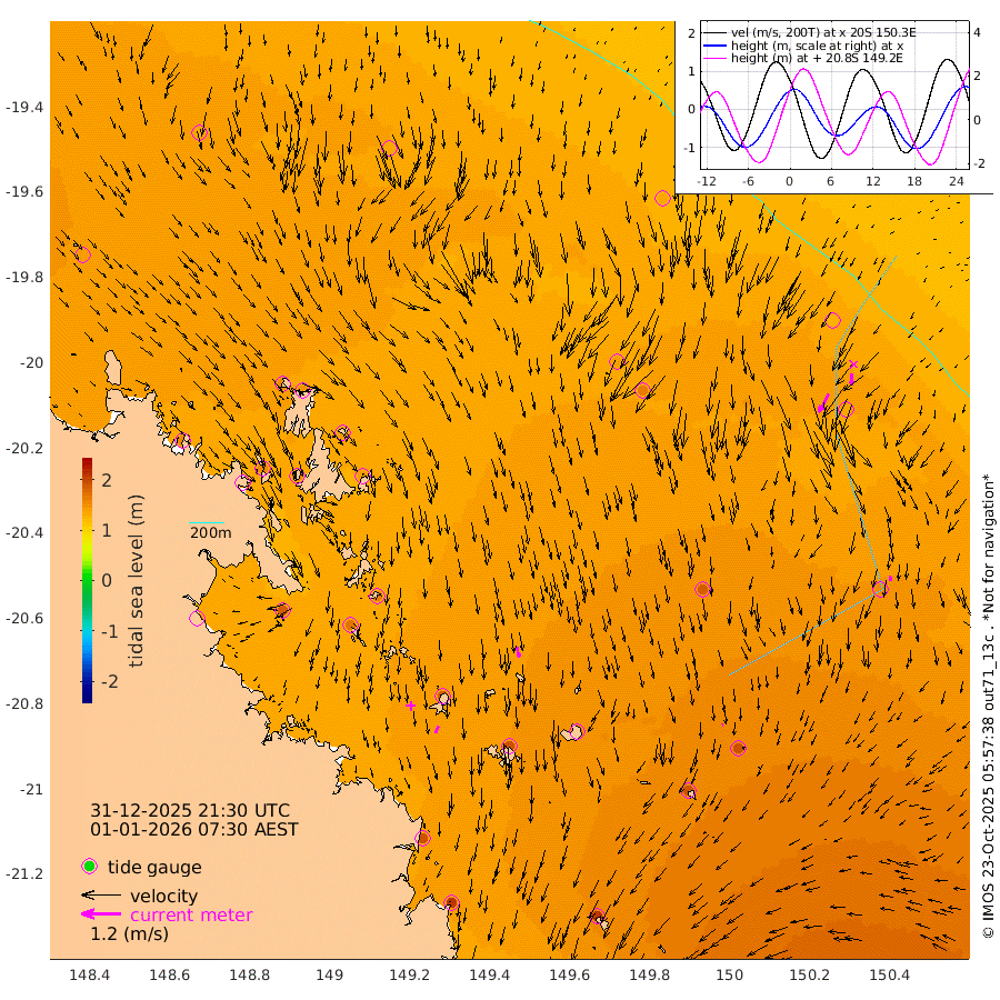 22cm/s -155T +10cm/s rms + 2cm/s 5T. Brampton I 18m 33cm/s 166T +9cm/s rms + 6cm/s 66T. Wigton I 38m 4cm/s -107T +7cm/s rms + 8cm/s 141T. Tern I 47m 36cm/s 179T +7cm/s rms + 12cm/s 54T. N Bugatti Rf 64m 62cm/s -152T +3cm/s rms + 13cm/s 178T. W Bugatti Rf 70m 18cm/s 170T +3cm/s rms + 3cm/s -130T. Creal Rf 69m 140cm Holbourne I 195cm Tern I 134cm Bugatti Rf 151cm Creal Rf 124cm White Tip I 128cm Wallaby Reef 131cm Kennedy Reef 131cm Unnamed Reef No. 2 142cm Tideway Reef 152cm Hayman Island 163cm Square Reef 154cm Double Bay 155cm Molle Island 155cm Cid Harbour 145cm Hook Island 140cm Border Island 142cm Haslewood Island 154cm Shute Harbour 161cm Thomas Island 183cm Credlin Reef 183cm East Repulse Island 167cm Blacksmith Island 164cm Laguna Quays 185cm Carlisle Island (Off) 194cm St. Bees Island 173cm Scawfell Island 193cm Penrith Island 193cm Mackay Outer Harbour 206cm Hay Point 207cm Prudhoe Island