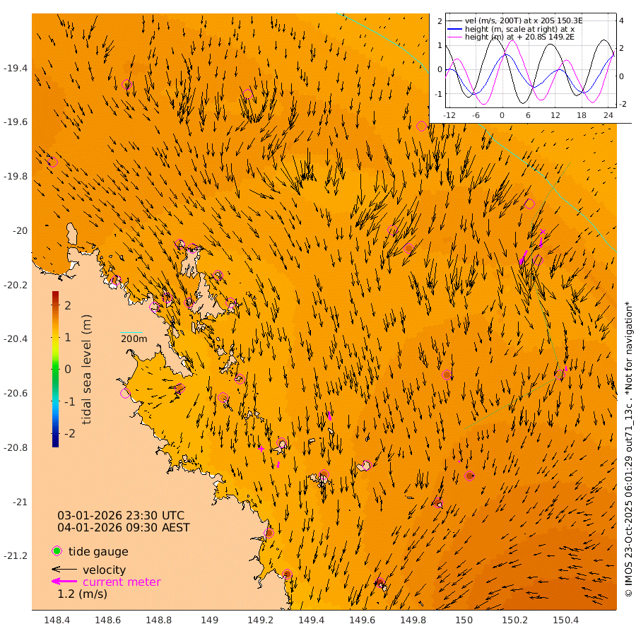 29cm/s -169T +10cm/s rms + 2cm/s 5T. Brampton I 18m 44cm/s 168T +9cm/s rms + 6cm/s 66T. Wigton I 38m 8cm/s -134T +7cm/s rms + 8cm/s 141T. Tern I 47m 47cm/s -175T +7cm/s rms + 12cm/s 54T. N Bugatti Rf 64m 73cm/s -152T +3cm/s rms + 13cm/s 178T. W Bugatti Rf 70m 23cm/s 178T +3cm/s rms + 3cm/s -130T. Creal Rf 69m 153cm Holbourne I 199cm Tern I 145cm Bugatti Rf 160cm Creal Rf 139cm White Tip I 136cm Wallaby Reef 141cm Kennedy Reef 146cm Unnamed Reef No. 2 147cm Tideway Reef 157cm Hayman Island 173cm Square Reef 167cm Double Bay 159cm Molle Island 150cm Cid Harbour 154cm Hook Island 137cm Border Island 140cm Haslewood Island 154cm Shute Harbour 157cm Thomas Island 184cm Credlin Reef 170cm East Repulse Island 154cm Blacksmith Island 156cm Laguna Quays 180cm Carlisle Island (Off) 186cm St. Bees Island 167cm Scawfell Island 196cm Penrith Island 188cm Mackay Outer Harbour 201cm Hay Point 216cm Prudhoe Island