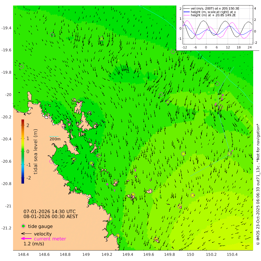 20cm/s 174T +10cm/s rms + 2cm/s 5T. Brampton I 18m 30cm/s 166T +9cm/s rms + 6cm/s 66T. Wigton I 38m 4cm/s 154T +7cm/s rms + 8cm/s 141T. Tern I 47m 30cm/s -170T +7cm/s rms + 12cm/s 54T. N Bugatti Rf 64m 36cm/s -152T +3cm/s rms + 13cm/s 178T. W Bugatti Rf 70m 13cm/s 164T +3cm/s rms + 3cm/s -130T. Creal Rf 69m 22cm Holbourne I 66cm Tern I 24cm Bugatti Rf 40cm Creal Rf 15cm White Tip I 11cm Wallaby Reef 27cm Kennedy Reef 16cm Unnamed Reef No. 2 20cm Tideway Reef 25cm Hayman Island 28cm Square Reef 26cm Double Bay 6cm Molle Island 23cm Cid Harbour 26cm Hook Island 18cm Border Island 19cm Haslewood Island 26cm Shute Harbour 37cm Thomas Island 45cm Credlin Reef 37cm East Repulse Island 36cm Blacksmith Island 36cm Laguna Quays 44cm Carlisle Island (Off) 56cm St. Bees Island 41cm Scawfell Island 62cm Penrith Island 61cm Mackay Outer Harbour 72cm Hay Point 82cm Prudhoe Island