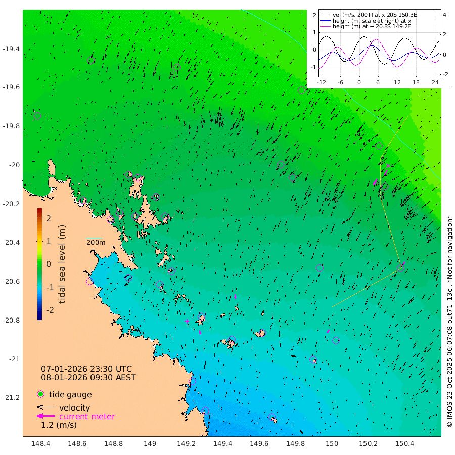 25cm/s 168T +10cm/s rms + 2cm/s 5T. Brampton I 18m 29cm/s 177T +9cm/s rms + 6cm/s 66T. Wigton I 38m 22cm/s -150T +7cm/s rms + 8cm/s 141T. Tern I 47m 41cm/s -154T +7cm/s rms + 12cm/s 54T. N Bugatti Rf 64m 42cm/s -145T +3cm/s rms + 13cm/s 178T. W Bugatti Rf 70m 20cm/s -150T +3cm/s rms + 3cm/s -130T. Creal Rf 69m -16cm Holbourne I -80cm Tern I -20cm Bugatti Rf -46cm Creal Rf 0cm White Tip I -6cm Wallaby Reef 1cm Kennedy Reef 11cm Unnamed Reef No. 2 -42cm Tideway Reef -29cm Hayman Island -51cm Square Reef -43cm Double Bay -45cm Molle Island -47cm Cid Harbour -41cm Hook Island -49cm Border Island -56cm Haslewood Island -53cm Shute Harbour -75cm Thomas Island -72cm Credlin Reef -95cm East Repulse Island -78cm Blacksmith Island -102cm Laguna Quays -94cm Carlisle Island (Off) -104cm St. Bees Island -82cm Scawfell Island -84cm Penrith Island -112cm Mackay Outer Harbour -118cm Hay Point -111cm Prudhoe Island
