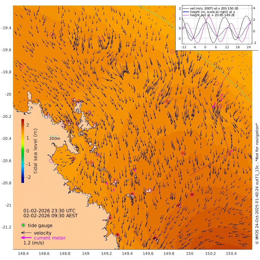 27cm/s -171T +10cm/s rms + 2cm/s 5T. Brampton I 18m 42cm/s 166T +9cm/s rms + 6cm/s 66T. Wigton I 38m 3cm/s -146T +7cm/s rms + 8cm/s 141T. Tern I 47m 44cm/s -178T +7cm/s rms + 12cm/s 54T. N Bugatti Rf 64m 70cm/s -154T +3cm/s rms + 13cm/s 178T. W Bugatti Rf 70m 23cm/s 170T +3cm/s rms + 3cm/s -130T. Creal Rf 69m 162cm Holbourne I 221cm Tern I 153cm Bugatti Rf 174cm Creal Rf 143cm White Tip I 143cm Wallaby Reef 143cm Kennedy Reef 147cm Unnamed Reef No. 2 160cm Tideway Reef 169cm Hayman Island 193cm Square Reef 180cm Double Bay 173cm Molle Island 165cm Cid Harbour 166cm Hook Island 150cm Border Island 156cm Haslewood Island 170cm Shute Harbour 176cm Thomas Island 202cm Credlin Reef 189cm East Repulse Island 174cm Blacksmith Island 179cm Laguna Quays 201cm Carlisle Island (Off) 209cm St. Bees Island 189cm Scawfell Island 221cm Penrith Island 213cm Mackay Outer Harbour 229cm Hay Point 246cm Prudhoe Island