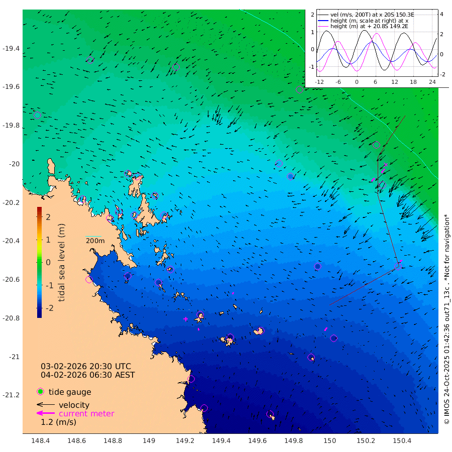 16cm/s 167T +10cm/s rms + 2cm/s 5T. Brampton I 18m 14cm/s -163T +9cm/s rms + 6cm/s 66T. Wigton I 38m 26cm/s -146T +7cm/s rms + 8cm/s 141T. Tern I 47m 34cm/s -141T +7cm/s rms + 12cm/s 54T. N Bugatti Rf 64m 28cm/s -137T +3cm/s rms + 13cm/s 178T. W Bugatti Rf 70m 19cm/s -123T +3cm/s rms + 3cm/s -130T. Creal Rf 69m -80cm Holbourne I -194cm Tern I -89cm Bugatti Rf -134cm Creal Rf -57cm White Tip I -65cm Wallaby Reef -55cm Kennedy Reef -41cm Unnamed Reef No. 2 -114cm Tideway Reef -100cm Hayman Island -148cm Square Reef -114cm Double Bay -118cm Molle Island -126cm Cid Harbour -112cm Hook Island -120cm Border Island -132cm Haslewood Island -131cm Shute Harbour -165cm Thomas Island -173cm Credlin Reef -187cm East Repulse Island -173cm Blacksmith Island -197cm Laguna Quays -194cm Carlisle Island (Off) -218cm St. Bees Island -183cm Scawfell Island -199cm Penrith Island -227cm Mackay Outer Harbour -241cm Hay Point -242cm Prudhoe Island