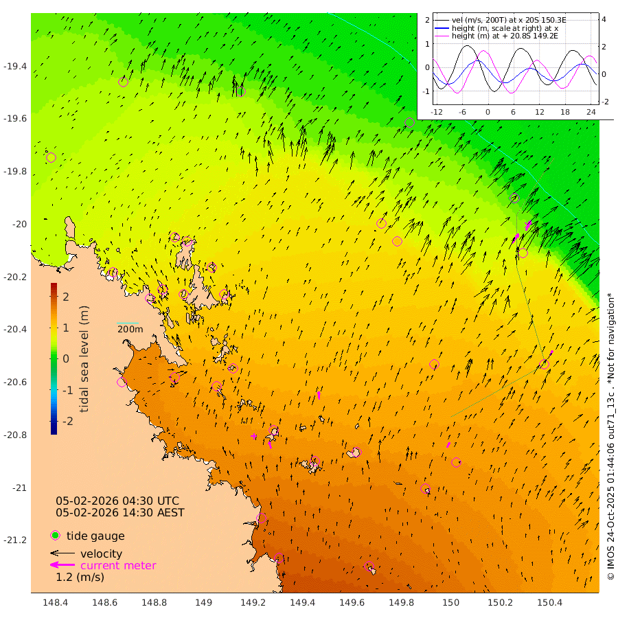 35cm/s -16T +10cm/s rms + 2cm/s 5T. Brampton I 18m 38cm/s -5T +9cm/s rms + 6cm/s 66T. Wigton I 38m 29cm/s 26T +7cm/s rms + 8cm/s 141T. Tern I 47m 55cm/s 25T +7cm/s rms + 12cm/s 54T. N Bugatti Rf 64m 56cm/s 34T +3cm/s rms + 13cm/s 178T. W Bugatti Rf 70m 26cm/s 27T +3cm/s rms + 3cm/s -130T. Creal Rf 69m 54cm Holbourne I 138cm Tern I 61cm Bugatti Rf 95cm Creal Rf 36cm White Tip I 40cm Wallaby Reef 21cm Kennedy Reef 18cm Unnamed Reef No. 2 85cm Tideway Reef 69cm Hayman Island 106cm Square Reef 93cm Double Bay 106cm Molle Island 90cm Cid Harbour 84cm Hook Island 90cm Border Island 104cm Haslewood Island 99cm Shute Harbour 127cm Thomas Island 124cm Credlin Reef 147cm East Repulse Island 131cm Blacksmith Island 162cm Laguna Quays 149cm Carlisle Island (Off) 162cm St. Bees Island 140cm Scawfell Island 143cm Penrith Island 177cm Mackay Outer Harbour 185cm Hay Point 179cm Prudhoe Island