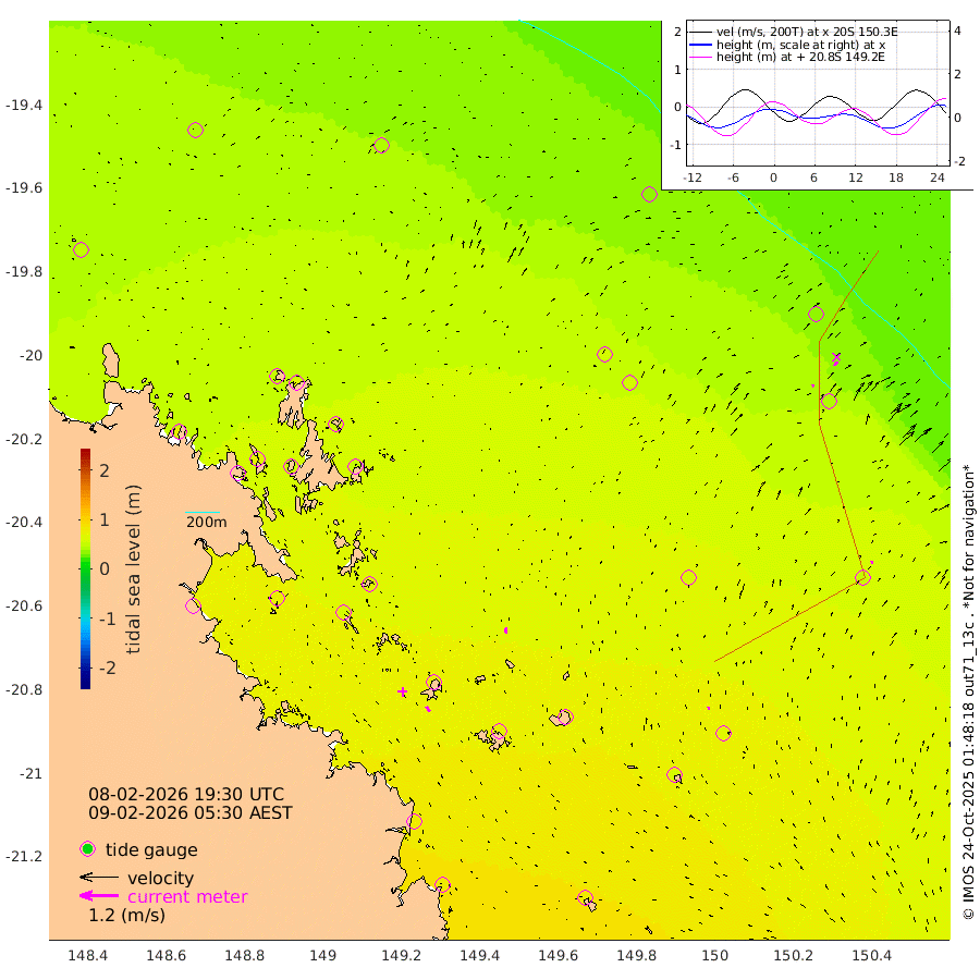 18cm/s -38T +10cm/s rms + 2cm/s 5T. Brampton I 18m 16cm/s -7T +9cm/s rms + 6cm/s 66T. Wigton I 38m 8cm/s -4T +7cm/s rms + 8cm/s 141T. Tern I 47m 15cm/s 35T +7cm/s rms + 12cm/s 54T. N Bugatti Rf 64m 6cm/s 57T +3cm/s rms + 13cm/s 178T. W Bugatti Rf 70m 9cm/s -3T +3cm/s rms + 3cm/s -130T. Creal Rf 69m 51cm Holbourne I 64cm Tern I 39cm Bugatti Rf 46cm Creal Rf 35cm White Tip I 38cm Wallaby Reef 42cm Kennedy Reef 37cm Unnamed Reef No. 2 54cm Tideway Reef 50cm Hayman Island 55cm Square Reef 68cm Double Bay 68cm Molle Island 47cm Cid Harbour 62cm Hook Island 49cm Border Island 48cm Haslewood Island 59cm Shute Harbour 65cm Thomas Island 60cm Credlin Reef 74cm East Repulse Island 56cm Blacksmith Island 74cm Laguna Quays 69cm Carlisle Island (Off) 68cm St. Bees Island 54cm Scawfell Island 58cm Penrith Island 78cm Mackay Outer Harbour 79cm Hay Point 81cm Prudhoe Island
