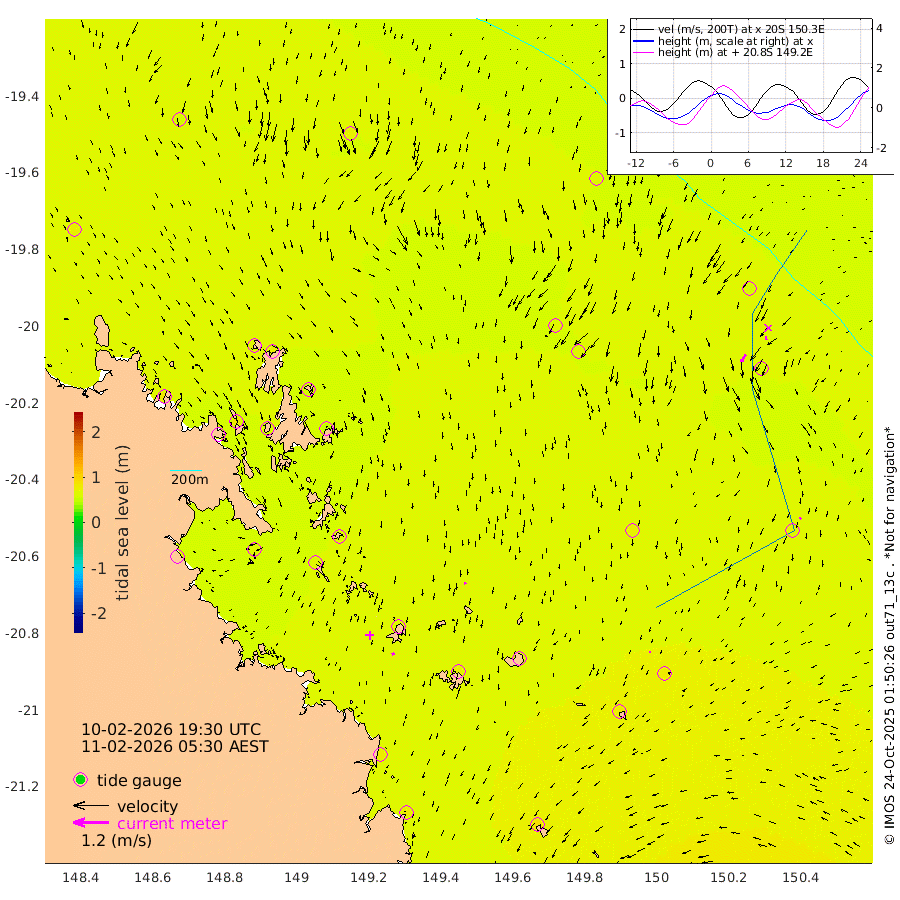 10cm/s -111T +10cm/s rms + 2cm/s 5T. Brampton I 18m 8cm/s 173T +9cm/s rms + 6cm/s 66T. Wigton I 38m 6cm/s -89T +7cm/s rms + 8cm/s 141T. Tern I 47m 13cm/s 180T +7cm/s rms + 12cm/s 54T. N Bugatti Rf 64m 29cm/s -147T +3cm/s rms + 13cm/s 178T. W Bugatti Rf 70m 5cm/s -140T +3cm/s rms + 3cm/s -130T. Creal Rf 69m 71cm Holbourne I 77cm Tern I 59cm Bugatti Rf 62cm Creal Rf 59cm White Tip I 56cm Wallaby Reef 68cm Kennedy Reef 62cm Unnamed Reef No. 2 61cm Tideway Reef 67cm Hayman Island 67cm Square Reef 78cm Double Bay 76cm Molle Island 57cm Cid Harbour 71cm Hook Island 59cm Border Island 51cm Haslewood Island 66cm Shute Harbour 65cm Thomas Island 68cm Credlin Reef 65cm East Repulse Island 61cm Blacksmith Island 68cm Laguna Quays 67cm Carlisle Island (Off) 70cm St. Bees Island 65cm Scawfell Island 76cm Penrith Island 78cm Mackay Outer Harbour 82cm Hay Point 88cm Prudhoe Island