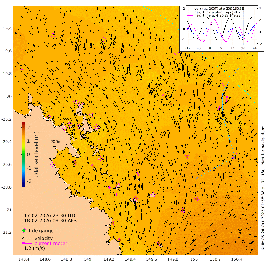 28cm/s -179T +10cm/s rms + 2cm/s 5T. Brampton I 18m 45cm/s 167T +9cm/s rms + 6cm/s 66T. Wigton I 38m 6cm/s 176T +7cm/s rms + 8cm/s 141T. Tern I 47m 44cm/s -175T +7cm/s rms + 12cm/s 54T. N Bugatti Rf 64m 65cm/s -153T +3cm/s rms + 13cm/s 178T. W Bugatti Rf 70m 26cm/s 169T +3cm/s rms + 3cm/s -130T. Creal Rf 69m 125cm Holbourne I 185cm Tern I 126cm Bugatti Rf 144cm Creal Rf 117cm White Tip I 120cm Wallaby Reef 118cm Kennedy Reef 119cm Unnamed Reef No. 2 129cm Tideway Reef 143cm Hayman Island 161cm Square Reef 124cm Double Bay 141cm Molle Island 149cm Cid Harbour 125cm Hook Island 130cm Border Island 135cm Haslewood Island 139cm Shute Harbour 145cm Thomas Island 172cm Credlin Reef 160cm East Repulse Island 157cm Blacksmith Island 146cm Laguna Quays 168cm Carlisle Island (Off) 170cm St. Bees Island 163cm Scawfell Island 194cm Penrith Island 176cm Mackay Outer Harbour 190cm Hay Point 192cm Prudhoe Island