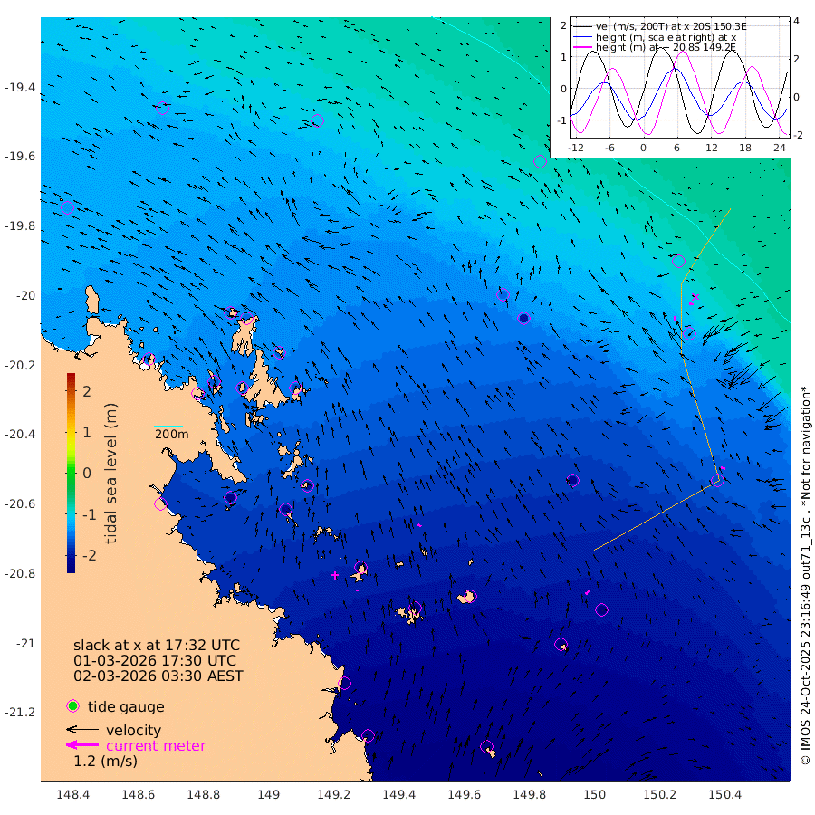3cm/s -3T +10cm/s rms + 2cm/s 5T. Brampton I 18m 12cm/s -52T +9cm/s rms + 6cm/s 66T. Wigton I 38m 19cm/s -135T +7cm/s rms + 8cm/s 141T. Tern I 47m 17cm/s -84T +7cm/s rms + 12cm/s 54T. N Bugatti Rf 64m 17cm/s 0T +3cm/s rms + 13cm/s 178T. W Bugatti Rf 70m 16cm/s -72T +3cm/s rms + 3cm/s -130T. Creal Rf 69m -130cm Holbourne I -234cm Tern I -128cm Bugatti Rf -169cm Creal Rf -100cm White Tip I -117cm Wallaby Reef -105cm Kennedy Reef -92cm Unnamed Reef No. 2 -157cm Tideway Reef -151cm Hayman Island -196cm Square Reef -157cm Double Bay -161cm Molle Island -173cm Cid Harbour -151cm Hook Island -159cm Border Island -170cm Haslewood Island -173cm Shute Harbour -199cm Thomas Island -216cm Credlin Reef -224cm East Repulse Island -209cm Blacksmith Island -222cm Laguna Quays -230cm Carlisle Island (Off) -252cm St. Bees Island -218cm Scawfell Island -237cm Penrith Island -253cm Mackay Outer Harbour -268cm Hay Point -274cm Prudhoe Island