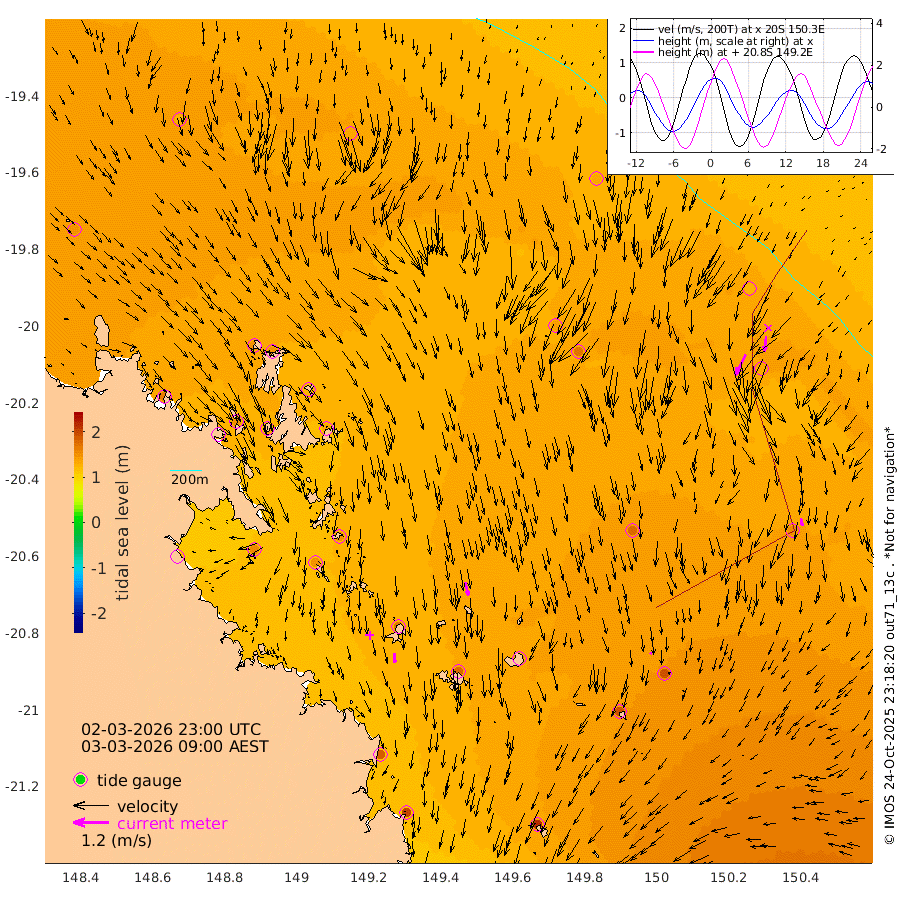 31cm/s 180T +10cm/s rms + 2cm/s 5T. Brampton I 18m 47cm/s 166T +9cm/s rms + 6cm/s 66T. Wigton I 38m 6cm/s -167T +7cm/s rms + 8cm/s 141T. Tern I 47m 51cm/s -173T +7cm/s rms + 12cm/s 54T. N Bugatti Rf 64m 76cm/s -153T +3cm/s rms + 13cm/s 178T. W Bugatti Rf 70m 26cm/s 171T +3cm/s rms + 3cm/s -130T. Creal Rf 69m 145cm Holbourne I 193cm Tern I 134cm Bugatti Rf 152cm Creal Rf 126cm White Tip I 127cm Wallaby Reef 128cm Kennedy Reef 131cm Unnamed Reef No. 2 138cm Tideway Reef 150cm Hayman Island 169cm Square Reef 159cm Double Bay 148cm Molle Island 141cm Cid Harbour 144cm Hook Island 127cm Border Island 133cm Haslewood Island 146cm Shute Harbour 150cm Thomas Island 174cm Credlin Reef 157cm East Repulse Island 146cm Blacksmith Island 149cm Laguna Quays 170cm Carlisle Island (Off) 178cm St. Bees Island 161cm Scawfell Island 193cm Penrith Island 181cm Mackay Outer Harbour 195cm Hay Point 216cm Prudhoe Island