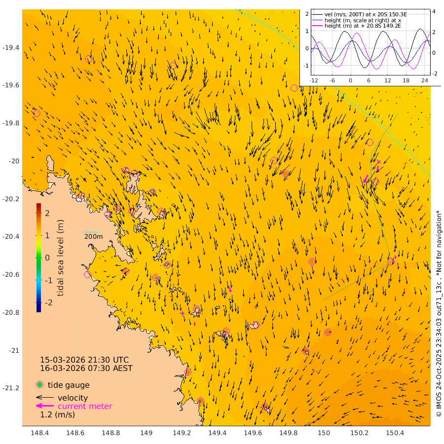 21cm/s -175T +10cm/s rms + 2cm/s 5T. Brampton I 18m 34cm/s 167T +9cm/s rms + 6cm/s 66T. Wigton I 38m 5cm/s -170T +7cm/s rms + 8cm/s 141T. Tern I 47m 37cm/s -175T +7cm/s rms + 12cm/s 54T. N Bugatti Rf 64m 59cm/s -151T +3cm/s rms + 13cm/s 178T. W Bugatti Rf 70m 21cm/s 170T +3cm/s rms + 3cm/s -130T. Creal Rf 69m 123cm Holbourne I 164cm Tern I 116cm Bugatti Rf 129cm Creal Rf 109cm White Tip I 117cm Wallaby Reef 116cm Kennedy Reef 112cm Unnamed Reef No. 2 124cm Tideway Reef 136cm Hayman Island 151cm Square Reef 120cm Double Bay 140cm Molle Island 139cm Cid Harbour 118cm Hook Island 126cm Border Island 125cm Haslewood Island 132cm Shute Harbour 134cm Thomas Island 155cm Credlin Reef 145cm East Repulse Island 145cm Blacksmith Island 137cm Laguna Quays 151cm Carlisle Island (Off) 148cm St. Bees Island 148cm Scawfell Island 175cm Penrith Island 159cm Mackay Outer Harbour 169cm Hay Point 170cm Prudhoe Island