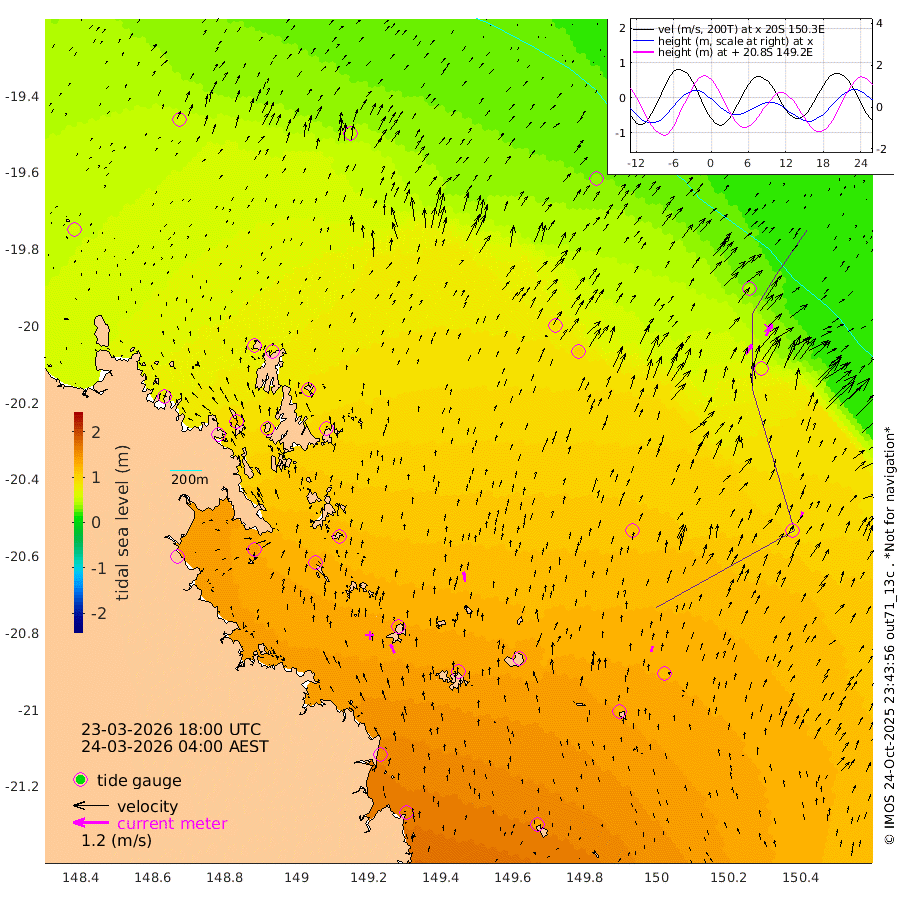 32cm/s -25T +10cm/s rms + 2cm/s 5T. Brampton I 18m 33cm/s -7T +9cm/s rms + 6cm/s 66T. Wigton I 38m 20cm/s 17T +7cm/s rms + 8cm/s 141T. Tern I 47m 44cm/s 25T +7cm/s rms + 12cm/s 54T. N Bugatti Rf 64m 38cm/s 32T +3cm/s rms + 13cm/s 178T. W Bugatti Rf 70m 20cm/s 17T +3cm/s rms + 3cm/s -130T. Creal Rf 69m 60cm Holbourne I 114cm Tern I 60cm Bugatti Rf 79cm Creal Rf 45cm White Tip I 54cm Wallaby Reef 47cm Kennedy Reef 36cm Unnamed Reef No. 2 85cm Tideway Reef 76cm Hayman Island 98cm Square Reef 79cm Double Bay 112cm Molle Island 98cm Cid Harbour 80cm Hook Island 97cm Border Island 97cm Haslewood Island 98cm Shute Harbour 116cm Thomas Island 112cm Credlin Reef 138cm East Repulse Island 130cm Blacksmith Island 142cm Laguna Quays 131cm Carlisle Island (Off) 134cm St. Bees Island 125cm Scawfell Island 127cm Penrith Island 149cm Mackay Outer Harbour 153cm Hay Point 132cm Prudhoe Island