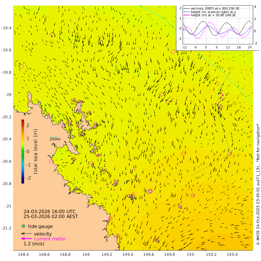 13cm/s -128T +10cm/s rms + 2cm/s 5T. Brampton I 18m 17cm/s 175T +9cm/s rms + 6cm/s 66T. Wigton I 38m 5cm/s -65T +7cm/s rms + 8cm/s 141T. Tern I 47m 13cm/s 180T +7cm/s rms + 12cm/s 54T. N Bugatti Rf 64m 22cm/s -147T +3cm/s rms + 13cm/s 178T. W Bugatti Rf 70m 5cm/s 175T +3cm/s rms + 3cm/s -130T. Creal Rf 69m 73cm Holbourne I 117cm Tern I 78cm Bugatti Rf 91cm Creal Rf 70cm White Tip I 63cm Wallaby Reef 69cm Kennedy Reef 72cm Unnamed Reef No. 2 75cm Tideway Reef 78cm Hayman Island 84cm Square Reef 89cm Double Bay 88cm Molle Island 81cm Cid Harbour 84cm Hook Island 78cm Border Island 79cm Haslewood Island 85cm Shute Harbour 93cm Thomas Island 106cm Credlin Reef 107cm East Repulse Island 95cm Blacksmith Island 99cm Laguna Quays 113cm Carlisle Island (Off) 116cm St. Bees Island 99cm Scawfell Island 119cm Penrith Island 123cm Mackay Outer Harbour 132cm Hay Point 128cm Prudhoe Island