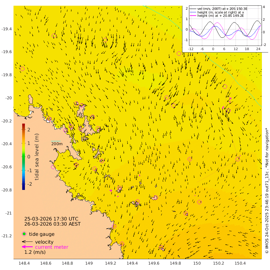 13cm/s -127T +10cm/s rms + 2cm/s 5T. Brampton I 18m 15cm/s 176T +9cm/s rms + 6cm/s 66T. Wigton I 38m 5cm/s -81T +7cm/s rms + 8cm/s 141T. Tern I 47m 15cm/s -180T +7cm/s rms + 12cm/s 54T. N Bugatti Rf 64m 28cm/s -149T +3cm/s rms + 13cm/s 178T. W Bugatti Rf 70m 7cm/s -168T +3cm/s rms + 3cm/s -130T. Creal Rf 69m 91cm Holbourne I 119cm Tern I 86cm Bugatti Rf 94cm Creal Rf 82cm White Tip I 79cm Wallaby Reef 85cm Kennedy Reef 88cm Unnamed Reef No. 2 89cm Tideway Reef 95cm Hayman Island 96cm Square Reef 107cm Double Bay 110cm Molle Island 92cm Cid Harbour 98cm Hook Island 90cm Border Island 90cm Haslewood Island 98cm Shute Harbour 100cm Thomas Island 113cm Credlin Reef 118cm East Repulse Island 100cm Blacksmith Island 106cm Laguna Quays 121cm Carlisle Island (Off) 114cm St. Bees Island 103cm Scawfell Island 123cm Penrith Island 125cm Mackay Outer Harbour 132cm Hay Point 127cm Prudhoe Island