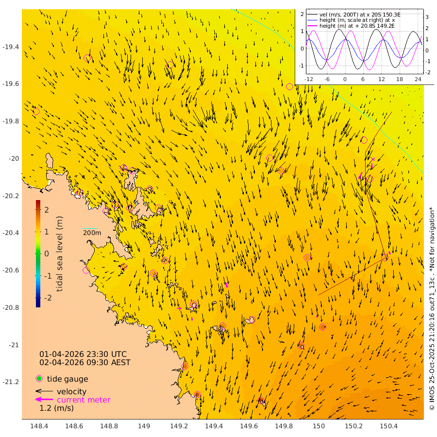 22cm/s 172T +10cm/s rms + 2cm/s 5T. Brampton I 18m 36cm/s 163T +9cm/s rms + 6cm/s 66T. Wigton I 38m 4cm/s 115T +7cm/s rms + 8cm/s 141T. Tern I 47m 35cm/s -175T +7cm/s rms + 12cm/s 54T. N Bugatti Rf 64m 51cm/s -155T +3cm/s rms + 13cm/s 178T. W Bugatti Rf 70m 20cm/s 154T +3cm/s rms + 3cm/s -130T. Creal Rf 69m 104cm Holbourne I 169cm Tern I 101cm Bugatti Rf 127cm Creal Rf 86cm White Tip I 88cm Wallaby Reef 88cm Kennedy Reef 83cm Unnamed Reef No. 2 105cm Tideway Reef 110cm Hayman Island 136cm Square Reef 118cm Double Bay 109cm Molle Island 112cm Cid Harbour 107cm Hook Island 99cm Border Island 107cm Haslewood Island 115cm Shute Harbour 128cm Thomas Island 143cm Credlin Reef 130cm East Repulse Island 129cm Blacksmith Island 134cm Laguna Quays 143cm Carlisle Island (Off) 157cm St. Bees Island 141cm Scawfell Island 168cm Penrith Island 166cm Mackay Outer Harbour 180cm Hay Point 199cm Prudhoe Island