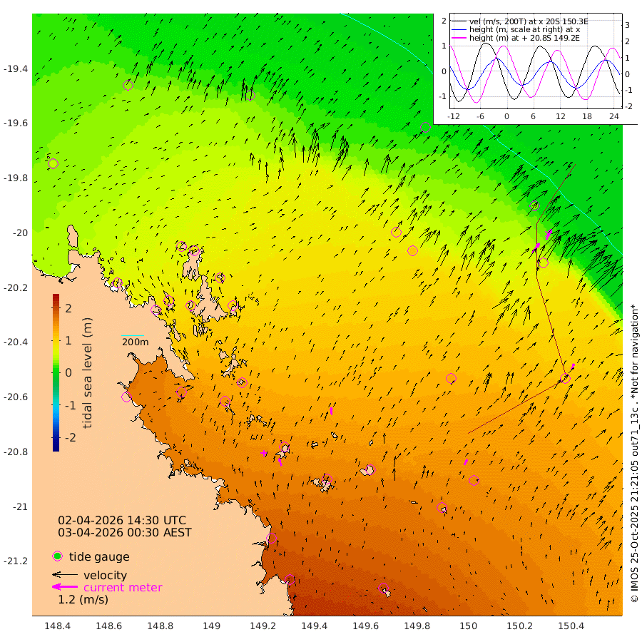 37cm/s -19T +10cm/s rms + 2cm/s 5T. Brampton I 18m 35cm/s -4T +9cm/s rms + 6cm/s 66T. Wigton I 38m 29cm/s 25T +7cm/s rms + 8cm/s 141T. Tern I 47m 54cm/s 26T +7cm/s rms + 12cm/s 54T. N Bugatti Rf 64m 57cm/s 37T +3cm/s rms + 13cm/s 178T. W Bugatti Rf 70m 28cm/s 26T +3cm/s rms + 3cm/s -130T. Creal Rf 69m 47cm Holbourne I 151cm Tern I 61cm Bugatti Rf 100cm Creal Rf 32cm White Tip I 36cm Wallaby Reef 27cm Kennedy Reef 14cm Unnamed Reef No. 2 85cm Tideway Reef 63cm Hayman Island 107cm Square Reef 83cm Double Bay 96cm Molle Island 94cm Cid Harbour 84cm Hook Island 90cm Border Island 101cm Haslewood Island 101cm Shute Harbour 140cm Thomas Island 132cm Credlin Reef 158cm East Repulse Island 145cm Blacksmith Island 171cm Laguna Quays 155cm Carlisle Island (Off) 177cm St. Bees Island 145cm Scawfell Island 151cm Penrith Island 193cm Mackay Outer Harbour 203cm Hay Point 198cm Prudhoe Island