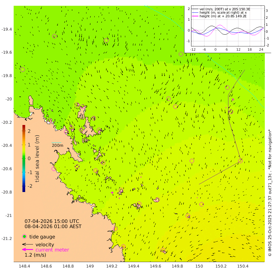 8cm/s -106T +10cm/s rms + 2cm/s 5T. Brampton I 18m 11cm/s -179T +9cm/s rms + 6cm/s 66T. Wigton I 38m 5cm/s -53T +7cm/s rms + 8cm/s 141T. Tern I 47m 3cm/s 177T +7cm/s rms + 12cm/s 54T. N Bugatti Rf 64m 7cm/s -121T +3cm/s rms + 13cm/s 178T. W Bugatti Rf 70m 1cm/s 116T +3cm/s rms + 3cm/s -130T. Creal Rf 69m 40cm Holbourne I 81cm Tern I 51cm Bugatti Rf 64cm Creal Rf 44cm White Tip I 35cm Wallaby Reef 40cm Kennedy Reef 36cm Unnamed Reef No. 2 43cm Tideway Reef 45cm Hayman Island 58cm Square Reef 44cm Double Bay 54cm Molle Island 53cm Cid Harbour 47cm Hook Island 51cm Border Island 47cm Haslewood Island 50cm Shute Harbour 61cm Thomas Island 67cm Credlin Reef 60cm East Repulse Island 73cm Blacksmith Island 68cm Laguna Quays 67cm Carlisle Island (Off) 81cm St. Bees Island 80cm Scawfell Island 88cm Penrith Island 87cm Mackay Outer Harbour 94cm Hay Point 90cm Prudhoe Island