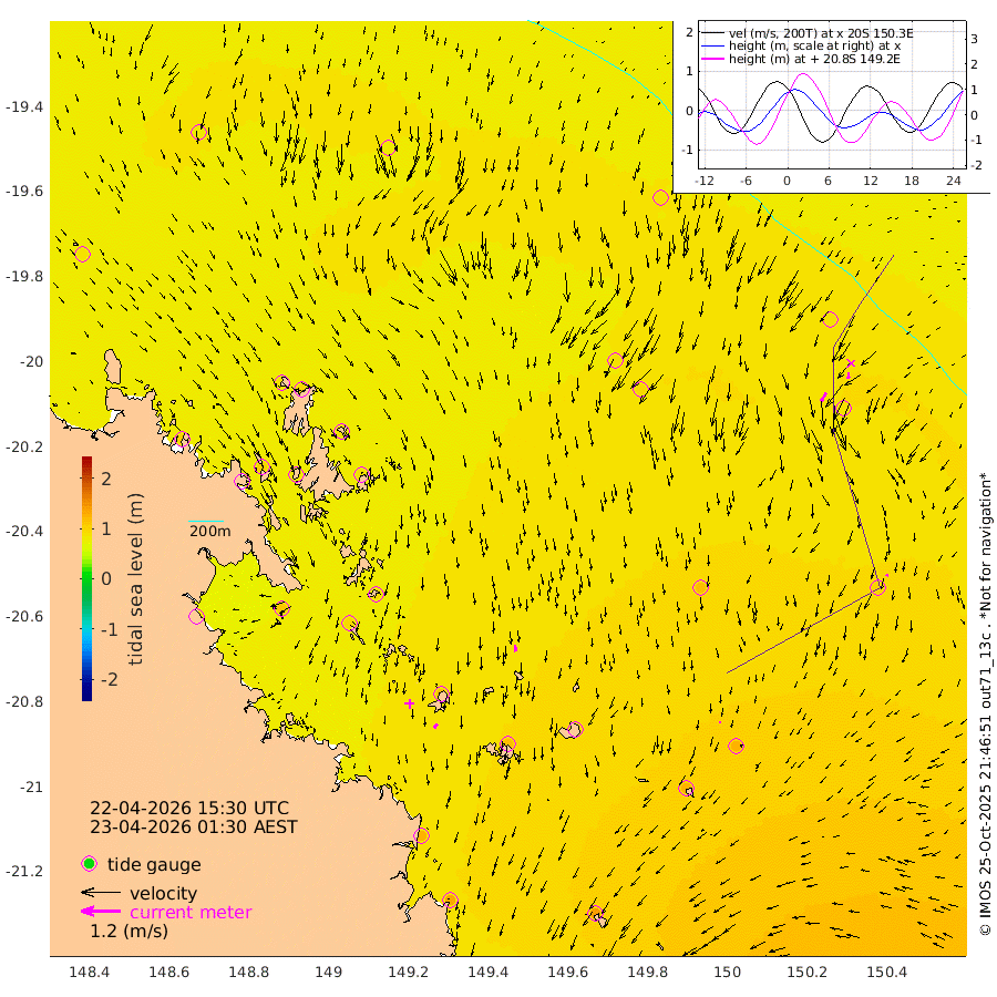 14cm/s -144T +10cm/s rms + 2cm/s 5T. Brampton I 18m 21cm/s 175T +9cm/s rms + 6cm/s 66T. Wigton I 38m 5cm/s -89T +7cm/s rms + 8cm/s 141T. Tern I 47m 18cm/s -175T +7cm/s rms + 12cm/s 54T. N Bugatti Rf 64m 28cm/s -149T +3cm/s rms + 13cm/s 178T. W Bugatti Rf 70m 8cm/s -172T +3cm/s rms + 3cm/s -130T. Creal Rf 69m 88cm Holbourne I 124cm Tern I 89cm Bugatti Rf 99cm Creal Rf 84cm White Tip I 76cm Wallaby Reef 82cm Kennedy Reef 87cm Unnamed Reef No. 2 86cm Tideway Reef 89cm Hayman Island 97cm Square Reef 104cm Double Bay 102cm Molle Island 87cm Cid Harbour 96cm Hook Island 84cm Border Island 86cm Haslewood Island 93cm Shute Harbour 97cm Thomas Island 113cm Credlin Reef 109cm East Repulse Island 96cm Blacksmith Island 102cm Laguna Quays 117cm Carlisle Island (Off) 116cm St. Bees Island 102cm Scawfell Island 125cm Penrith Island 125cm Mackay Outer Harbour 134cm Hay Point 135cm Prudhoe Island