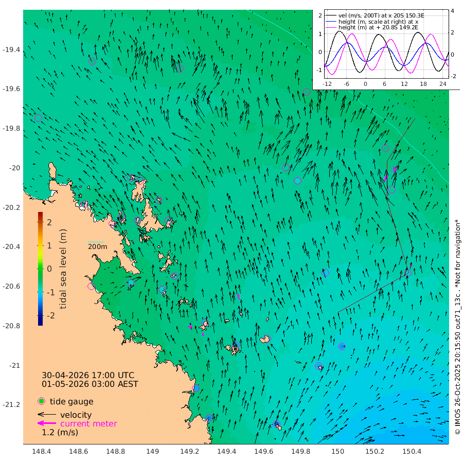 21cm/s -3T +10cm/s rms + 2cm/s 5T. Brampton I 18m 34cm/s -16T +9cm/s rms + 6cm/s 66T. Wigton I 38m 2cm/s -50T +7cm/s rms + 8cm/s 141T. Tern I 47m 34cm/s 4T +7cm/s rms + 12cm/s 54T. N Bugatti Rf 64m 50cm/s 27T +3cm/s rms + 13cm/s 178T. W Bugatti Rf 70m 16cm/s -25T +3cm/s rms + 3cm/s -130T. Creal Rf 69m -72cm Holbourne I -131cm Tern I -71cm Bugatti Rf -95cm Creal Rf -58cm White Tip I -56cm Wallaby Reef -60cm Kennedy Reef -56cm Unnamed Reef No. 2 -70cm Tideway Reef -76cm Hayman Island -94cm Square Reef -83cm Double Bay -60cm Molle Island -75cm Cid Harbour -74cm Hook Island -67cm Border Island -70cm Haslewood Island -79cm Shute Harbour -92cm Thomas Island -106cm Credlin Reef -92cm East Repulse Island -90cm Blacksmith Island -95cm Laguna Quays -103cm Carlisle Island (Off) -124cm St. Bees Island -109cm Scawfell Island -124cm Penrith Island -126cm Mackay Outer Harbour -139cm Hay Point -159cm Prudhoe Island