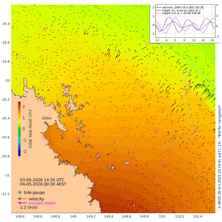 23cm/s -31T +10cm/s rms + 2cm/s 5T. Brampton I 18m 17cm/s -3T +9cm/s rms + 6cm/s 66T. Wigton I 38m 19cm/s 14T +7cm/s rms + 8cm/s 141T. Tern I 47m 32cm/s 32T +7cm/s rms + 12cm/s 54T. N Bugatti Rf 64m 26cm/s 38T +3cm/s rms + 13cm/s 178T. W Bugatti Rf 70m 16cm/s 24T +3cm/s rms + 3cm/s -130T. Creal Rf 69m 90cm Holbourne I 170cm Tern I 94cm Bugatti Rf 125cm Creal Rf 73cm White Tip I 72cm Wallaby Reef 71cm Kennedy Reef 59cm Unnamed Reef No. 2 110cm Tideway Reef 97cm Hayman Island 137cm Square Reef 119cm Double Bay 129cm Molle Island 112cm Cid Harbour 116cm Hook Island 112cm Border Island 114cm Haslewood Island 122cm Shute Harbour 149cm Thomas Island 149cm Credlin Reef 156cm East Repulse Island 152cm Blacksmith Island 174cm Laguna Quays 161cm Carlisle Island (Off) 182cm St. Bees Island 159cm Scawfell Island 171cm Penrith Island 197cm Mackay Outer Harbour 207cm Hay Point 211cm Prudhoe Island