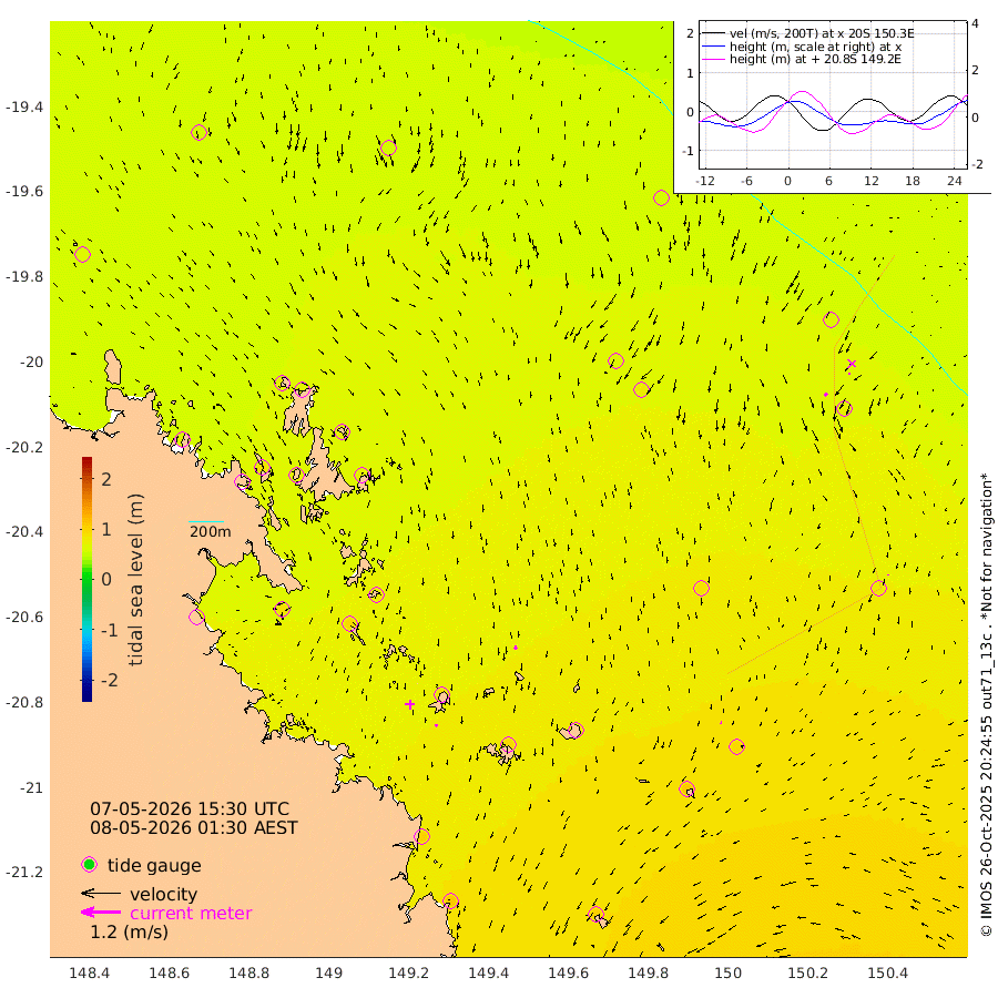 8cm/s -118T +10cm/s rms + 2cm/s 5T. Brampton I 18m 11cm/s 180T +9cm/s rms + 6cm/s 66T. Wigton I 38m 3cm/s -53T +7cm/s rms + 8cm/s 141T. Tern I 47m 6cm/s -179T +7cm/s rms + 12cm/s 54T. N Bugatti Rf 64m 11cm/s -135T +3cm/s rms + 13cm/s 178T. W Bugatti Rf 70m 3cm/s 174T +3cm/s rms + 3cm/s -130T. Creal Rf 69m 61cm Holbourne I 97cm Tern I 68cm Bugatti Rf 78cm Creal Rf 63cm White Tip I 58cm Wallaby Reef 60cm Kennedy Reef 58cm Unnamed Reef No. 2 65cm Tideway Reef 70cm Hayman Island 80cm Square Reef 64cm Double Bay 86cm Molle Island 77cm Cid Harbour 65cm Hook Island 73cm Border Island 71cm Haslewood Island 73cm Shute Harbour 79cm Thomas Island 88cm Credlin Reef 84cm East Repulse Island 93cm Blacksmith Island 86cm Laguna Quays 90cm Carlisle Island (Off) 91cm St. Bees Island 94cm Scawfell Island 109cm Penrith Island 103cm Mackay Outer Harbour 109cm Hay Point 100cm Prudhoe Island