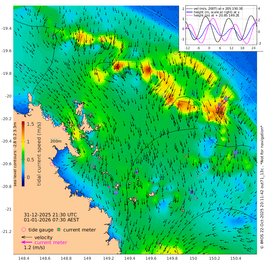 22cm/s -155T +10cm/s rms + 2cm/s 5T. Brampton I 18m 33cm/s 166T +9cm/s rms + 6cm/s 66T. Wigton I 38m 4cm/s -107T +7cm/s rms + 8cm/s 141T. Tern I 47m 36cm/s 179T +7cm/s rms + 12cm/s 54T. N Bugatti Rf 64m 62cm/s -152T +3cm/s rms + 13cm/s 178T. W Bugatti Rf 70m 18cm/s 170T +3cm/s rms + 3cm/s -130T. Creal Rf 69m 140cm Holbourne I 195cm Tern I 134cm Bugatti Rf 151cm Creal Rf 124cm White Tip I 128cm Wallaby Reef 131cm Kennedy Reef 131cm Unnamed Reef No. 2 142cm Tideway Reef 152cm Hayman Island 163cm Square Reef 154cm Double Bay 155cm Molle Island 155cm Cid Harbour 145cm Hook Island 140cm Border Island 142cm Haslewood Island 154cm Shute Harbour 161cm Thomas Island 183cm Credlin Reef 183cm East Repulse Island 167cm Blacksmith Island 164cm Laguna Quays 185cm Carlisle Island (Off) 194cm St. Bees Island 173cm Scawfell Island 193cm Penrith Island 193cm Mackay Outer Harbour 206cm Hay Point 207cm Prudhoe Island