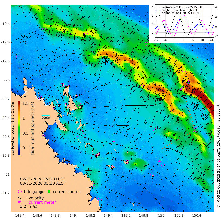 30cm/s 179T +10cm/s rms + 2cm/s 5T. Brampton I 18m 34cm/s -177T +9cm/s rms + 6cm/s 66T. Wigton I 38m 32cm/s -142T +7cm/s rms + 8cm/s 141T. Tern I 47m 57cm/s -153T +7cm/s rms + 12cm/s 54T. N Bugatti Rf 64m 60cm/s -142T +3cm/s rms + 13cm/s 178T. W Bugatti Rf 70m 28cm/s -141T +3cm/s rms + 3cm/s -130T. Creal Rf 69m -56cm Holbourne I -166cm Tern I -65cm Bugatti Rf -108cm Creal Rf -32cm White Tip I -51cm Wallaby Reef -30cm Kennedy Reef -10cm Unnamed Reef No. 2 -99cm Tideway Reef -81cm Hayman Island -133cm Square Reef -85cm Double Bay -114cm Molle Island -123cm Cid Harbour -86cm Hook Island -113cm Border Island -128cm Haslewood Island -118cm Shute Harbour -155cm Thomas Island -151cm Credlin Reef -179cm East Repulse Island -176cm Blacksmith Island -193cm Laguna Quays -177cm Carlisle Island (Off) -201cm St. Bees Island -180cm Scawfell Island -179cm Penrith Island -209cm Mackay Outer Harbour -219cm Hay Point -206cm Prudhoe Island