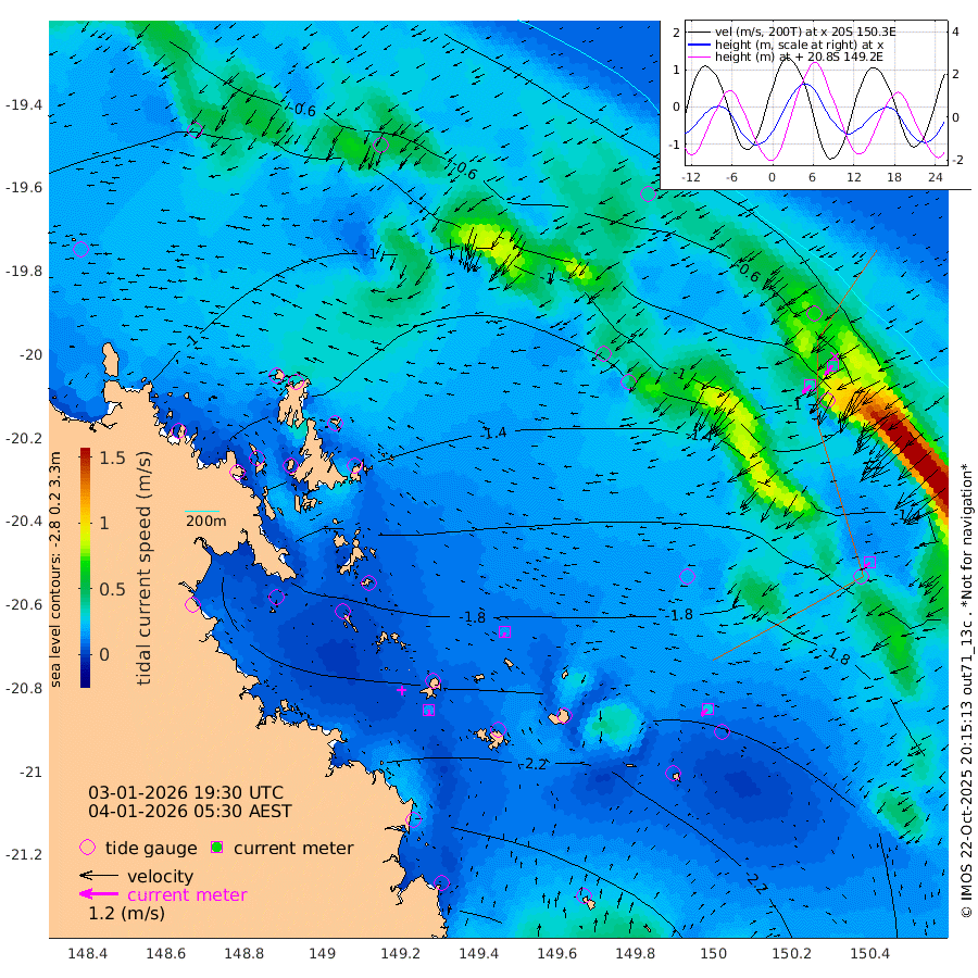 17cm/s 176T +10cm/s rms + 2cm/s 5T. Brampton I 18m 17cm/s -163T +9cm/s rms + 6cm/s 66T. Wigton I 38m 28cm/s -141T +7cm/s rms + 8cm/s 141T. Tern I 47m 38cm/s -144T +7cm/s rms + 12cm/s 54T. N Bugatti Rf 64m 33cm/s -135T +3cm/s rms + 13cm/s 178T. W Bugatti Rf 70m 21cm/s -124T +3cm/s rms + 3cm/s -130T. Creal Rf 69m -96cm Holbourne I -211cm Tern I -101cm Bugatti Rf -145cm Creal Rf -68cm White Tip I -86cm Wallaby Reef -69cm Kennedy Reef -51cm Unnamed Reef No. 2 -134cm Tideway Reef -119cm Hayman Island -170cm Square Reef -127cm Double Bay -148cm Molle Island -155cm Cid Harbour -125cm Hook Island -144cm Border Island -158cm Haslewood Island -154cm Shute Harbour -187cm Thomas Island -193cm Credlin Reef -215cm East Repulse Island -206cm Blacksmith Island -222cm Laguna Quays -217cm Carlisle Island (Off) -240cm St. Bees Island -211cm Scawfell Island -221cm Penrith Island -247cm Mackay Outer Harbour -261cm Hay Point -253cm Prudhoe Island