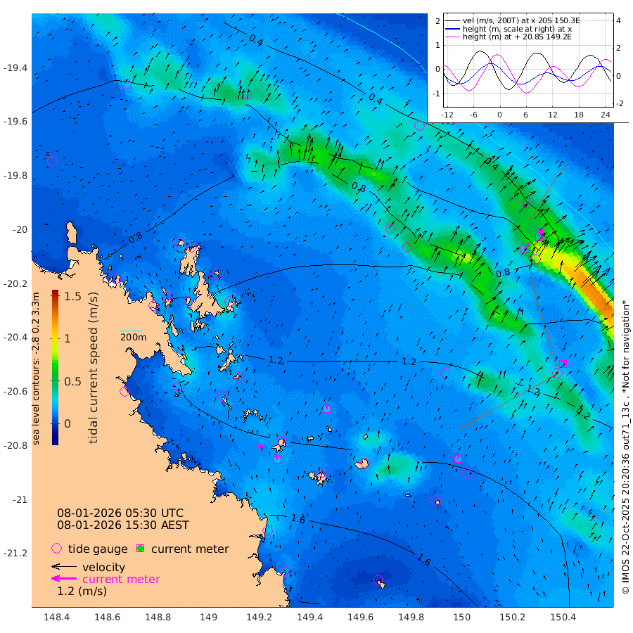 25cm/s -19T +10cm/s rms + 2cm/s 5T. Brampton I 18m 27cm/s -4T +9cm/s rms + 6cm/s 66T. Wigton I 38m 23cm/s 25T +7cm/s rms + 8cm/s 141T. Tern I 47m 39cm/s 28T +7cm/s rms + 12cm/s 54T. N Bugatti Rf 64m 37cm/s 36T +3cm/s rms + 13cm/s 178T. W Bugatti Rf 70m 18cm/s 32T +3cm/s rms + 3cm/s -130T. Creal Rf 69m 74cm Holbourne I 142cm Tern I 75cm Bugatti Rf 103cm Creal Rf 54cm White Tip I 61cm Wallaby Reef 44cm Kennedy Reef 42cm Unnamed Reef No. 2 98cm Tideway Reef 87cm Hayman Island 119cm Square Reef 111cm Double Bay 122cm Molle Island 101cm Cid Harbour 99cm Hook Island 100cm Border Island 112cm Haslewood Island 111cm Shute Harbour 131cm Thomas Island 132cm Credlin Reef 150cm East Repulse Island 132cm Blacksmith Island 160cm Laguna Quays 154cm Carlisle Island (Off) 162cm St. Bees Island 141cm Scawfell Island 150cm Penrith Island 174cm Mackay Outer Harbour 182cm Hay Point 178cm Prudhoe Island