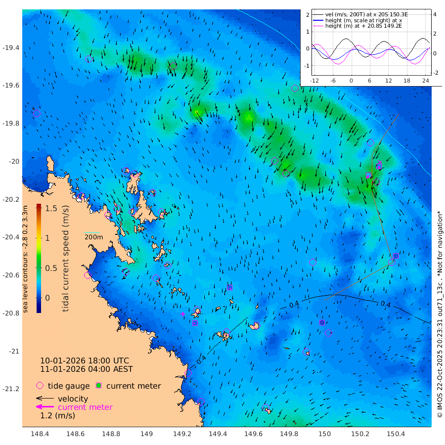 9cm/s -113T +10cm/s rms + 2cm/s 5T. Brampton I 18m 9cm/s 169T +9cm/s rms + 6cm/s 66T. Wigton I 38m 3cm/s -42T +7cm/s rms + 8cm/s 141T. Tern I 47m 14cm/s 177T +7cm/s rms + 12cm/s 54T. N Bugatti Rf 64m 23cm/s -148T +3cm/s rms + 13cm/s 178T. W Bugatti Rf 70m 4cm/s -178T +3cm/s rms + 3cm/s -130T. Creal Rf 69m 37cm Holbourne I 66cm Tern I 35cm Bugatti Rf 46cm Creal Rf 29cm White Tip I 23cm Wallaby Reef 39cm Kennedy Reef 30cm Unnamed Reef No. 2 34cm Tideway Reef 40cm Hayman Island 38cm Square Reef 46cm Double Bay 36cm Molle Island 32cm Cid Harbour 45cm Hook Island 32cm Border Island 28cm Haslewood Island 40cm Shute Harbour 49cm Thomas Island 51cm Credlin Reef 50cm East Repulse Island 43cm Blacksmith Island 52cm Laguna Quays 53cm Carlisle Island (Off) 60cm St. Bees Island 44cm Scawfell Island 62cm Penrith Island 70cm Mackay Outer Harbour 77cm Hay Point 83cm Prudhoe Island