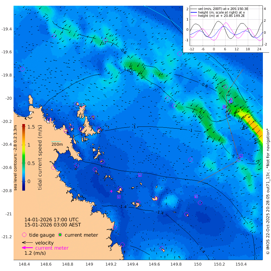 9cm/s -167T +10cm/s rms + 2cm/s 5T. Brampton I 18m 11cm/s -158T +9cm/s rms + 6cm/s 66T. Wigton I 38m 13cm/s -139T +7cm/s rms + 8cm/s 141T. Tern I 47m 18cm/s -133T +7cm/s rms + 12cm/s 54T. N Bugatti Rf 64m 13cm/s -112T +3cm/s rms + 13cm/s 178T. W Bugatti Rf 70m 9cm/s -130T +3cm/s rms + 3cm/s -130T. Creal Rf 69m -81cm Holbourne I -127cm Tern I -70cm Bugatti Rf -92cm Creal Rf -54cm White Tip I -69cm Wallaby Reef -63cm Kennedy Reef -49cm Unnamed Reef No. 2 -94cm Tideway Reef -82cm Hayman Island -117cm Square Reef -97cm Double Bay -107cm Molle Island -94cm Cid Harbour -93cm Hook Island -91cm Border Island -96cm Haslewood Island -101cm Shute Harbour -116cm Thomas Island -114cm Credlin Reef -122cm East Repulse Island -112cm Blacksmith Island -133cm Laguna Quays -123cm Carlisle Island (Off) -127cm St. Bees Island -113cm Scawfell Island -123cm Penrith Island -141cm Mackay Outer Harbour -147cm Hay Point -157cm Prudhoe Island