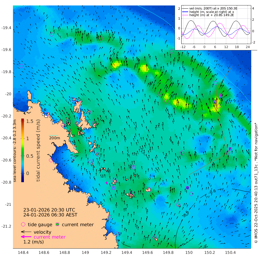 21cm/s -11T +10cm/s rms + 2cm/s 5T. Brampton I 18m 31cm/s -12T +9cm/s rms + 6cm/s 66T. Wigton I 38m 4cm/s -44T +7cm/s rms + 8cm/s 141T. Tern I 47m 24cm/s 7T +7cm/s rms + 12cm/s 54T. N Bugatti Rf 64m 29cm/s 30T +3cm/s rms + 13cm/s 178T. W Bugatti Rf 70m 16cm/s -20T +3cm/s rms + 3cm/s -130T. Creal Rf 69m -48cm Holbourne I -94cm Tern I -56cm Bugatti Rf -71cm Creal Rf -48cm White Tip I -46cm Wallaby Reef -44cm Kennedy Reef -47cm Unnamed Reef No. 2 -54cm Tideway Reef -58cm Hayman Island -69cm Square Reef -54cm Double Bay -51cm Molle Island -66cm Cid Harbour -52cm Hook Island -58cm Border Island -64cm Haslewood Island -60cm Shute Harbour -66cm Thomas Island -87cm Credlin Reef -78cm East Repulse Island -75cm Blacksmith Island -69cm Laguna Quays -89cm Carlisle Island (Off) -94cm St. Bees Island -84cm Scawfell Island -101cm Penrith Island -91cm Mackay Outer Harbour -101cm Hay Point -100cm Prudhoe Island