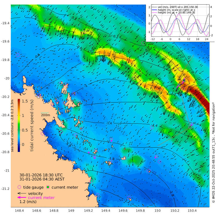 26cm/s -179T +10cm/s rms + 2cm/s 5T. Brampton I 18m 30cm/s -174T +9cm/s rms + 6cm/s 66T. Wigton I 38m 31cm/s -140T +7cm/s rms + 8cm/s 141T. Tern I 47m 50cm/s -150T +7cm/s rms + 12cm/s 54T. N Bugatti Rf 64m 50cm/s -139T +3cm/s rms + 13cm/s 178T. W Bugatti Rf 70m 25cm/s -134T +3cm/s rms + 3cm/s -130T. Creal Rf 69m -61cm Holbourne I -169cm Tern I -70cm Bugatti Rf -111cm Creal Rf -38cm White Tip I -58cm Wallaby Reef -36cm Kennedy Reef -18cm Unnamed Reef No. 2 -105cm Tideway Reef -88cm Hayman Island -140cm Square Reef -88cm Double Bay -114cm Molle Island -128cm Cid Harbour -90cm Hook Island -116cm Border Island -130cm Haslewood Island -122cm Shute Harbour -157cm Thomas Island -155cm Credlin Reef -180cm East Repulse Island -177cm Blacksmith Island -192cm Laguna Quays -177cm Carlisle Island (Off) -203cm St. Bees Island -181cm Scawfell Island -180cm Penrith Island -207cm Mackay Outer Harbour -217cm Hay Point -207cm Prudhoe Island