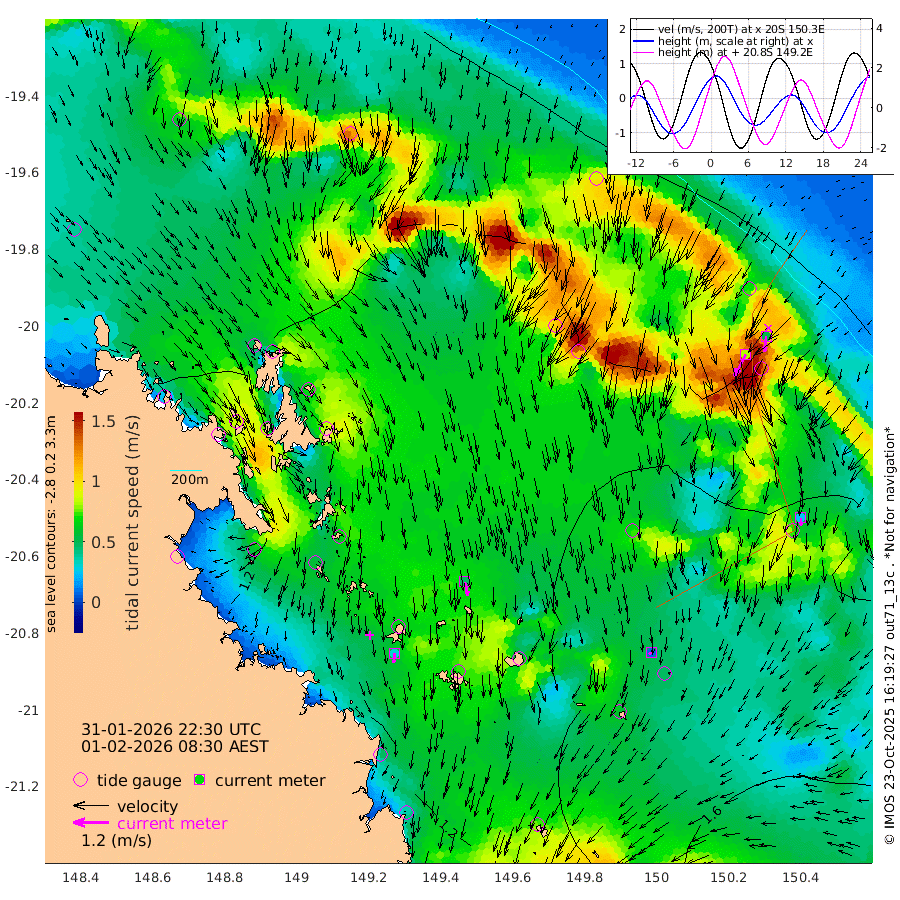 32cm/s -172T +10cm/s rms + 2cm/s 5T. Brampton I 18m 47cm/s 168T +9cm/s rms + 6cm/s 66T. Wigton I 38m 10cm/s -142T +7cm/s rms + 8cm/s 141T. Tern I 47m 53cm/s -174T +7cm/s rms + 12cm/s 54T. N Bugatti Rf 64m 82cm/s -152T +3cm/s rms + 13cm/s 178T. W Bugatti Rf 70m 26cm/s 179T +3cm/s rms + 3cm/s -130T. Creal Rf 69m 157cm Holbourne I 193cm Tern I 144cm Bugatti Rf 155cm Creal Rf 139cm White Tip I 140cm Wallaby Reef 144cm Kennedy Reef 150cm Unnamed Reef No. 2 147cm Tideway Reef 160cm Hayman Island 171cm Square Reef 169cm Double Bay 160cm Molle Island 149cm Cid Harbour 154cm Hook Island 136cm Border Island 139cm Haslewood Island 154cm Shute Harbour 153cm Thomas Island 180cm Credlin Reef 166cm East Repulse Island 148cm Blacksmith Island 149cm Laguna Quays 175cm Carlisle Island (Off) 177cm St. Bees Island 161cm Scawfell Island 191cm Penrith Island 179cm Mackay Outer Harbour 192cm Hay Point 207cm Prudhoe Island