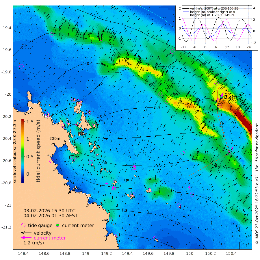 34cm/s -16T +10cm/s rms + 2cm/s 5T. Brampton I 18m 33cm/s -4T +9cm/s rms + 6cm/s 66T. Wigton I 38m 29cm/s 31T +7cm/s rms + 8cm/s 141T. Tern I 47m 48cm/s 22T +7cm/s rms + 12cm/s 54T. N Bugatti Rf 64m 56cm/s 37T +3cm/s rms + 13cm/s 178T. W Bugatti Rf 70m 28cm/s 31T +3cm/s rms + 3cm/s -130T. Creal Rf 69m -8cm Holbourne I 98cm Tern I 12cm Bugatti Rf 51cm Creal Rf -17cm White Tip I -13cm Wallaby Reef -23cm Kennedy Reef -35cm Unnamed Reef No. 2 32cm Tideway Reef 17cm Hayman Island 47cm Square Reef 25cm Double Bay 33cm Molle Island 48cm Cid Harbour 27cm Hook Island 41cm Border Island 55cm Haslewood Island 50cm Shute Harbour 89cm Thomas Island 79cm Credlin Reef 108cm East Repulse Island 99cm Blacksmith Island 119cm Laguna Quays 102cm Carlisle Island (Off) 125cm St. Bees Island 100cm Scawfell Island 103cm Penrith Island 140cm Mackay Outer Harbour 150cm Hay Point 139cm Prudhoe Island